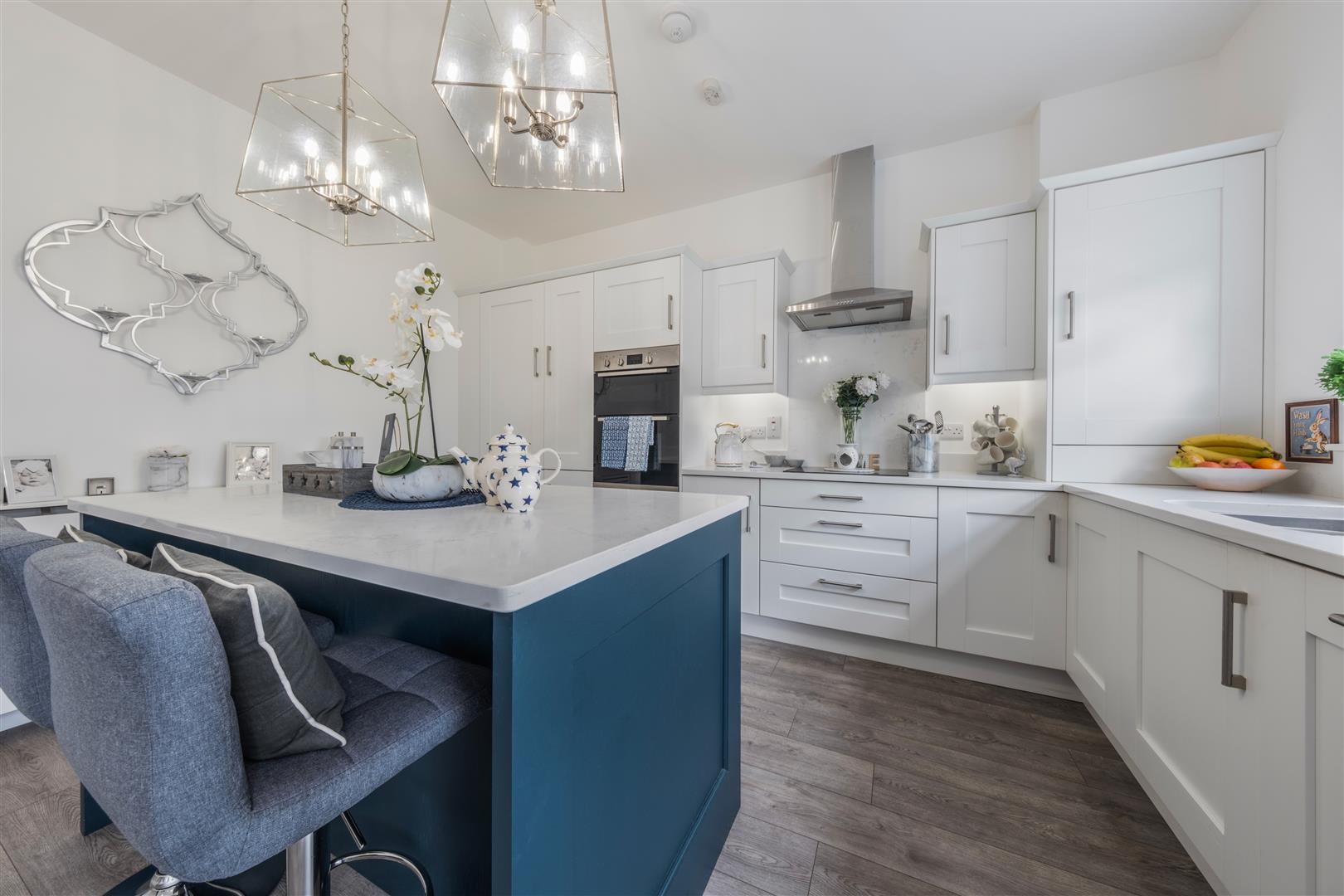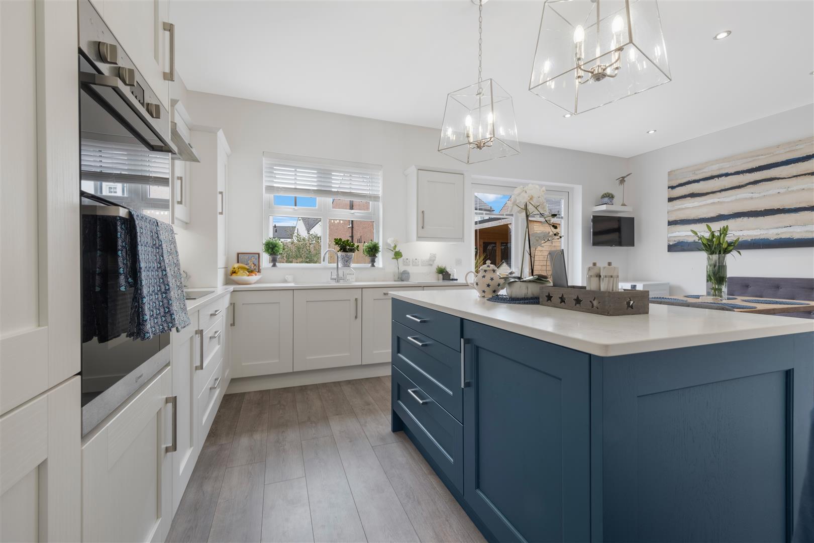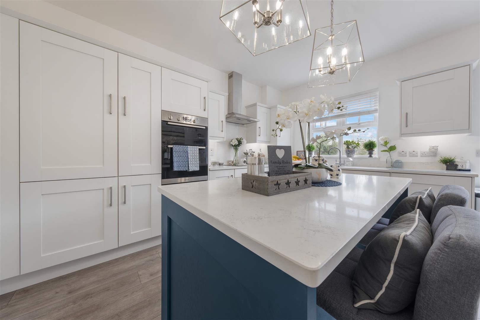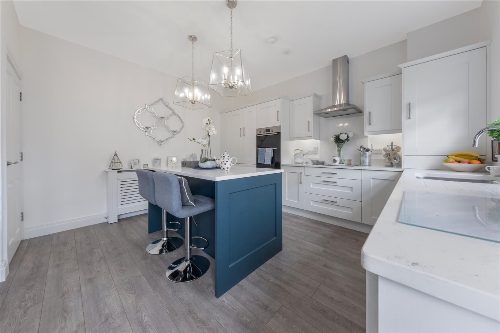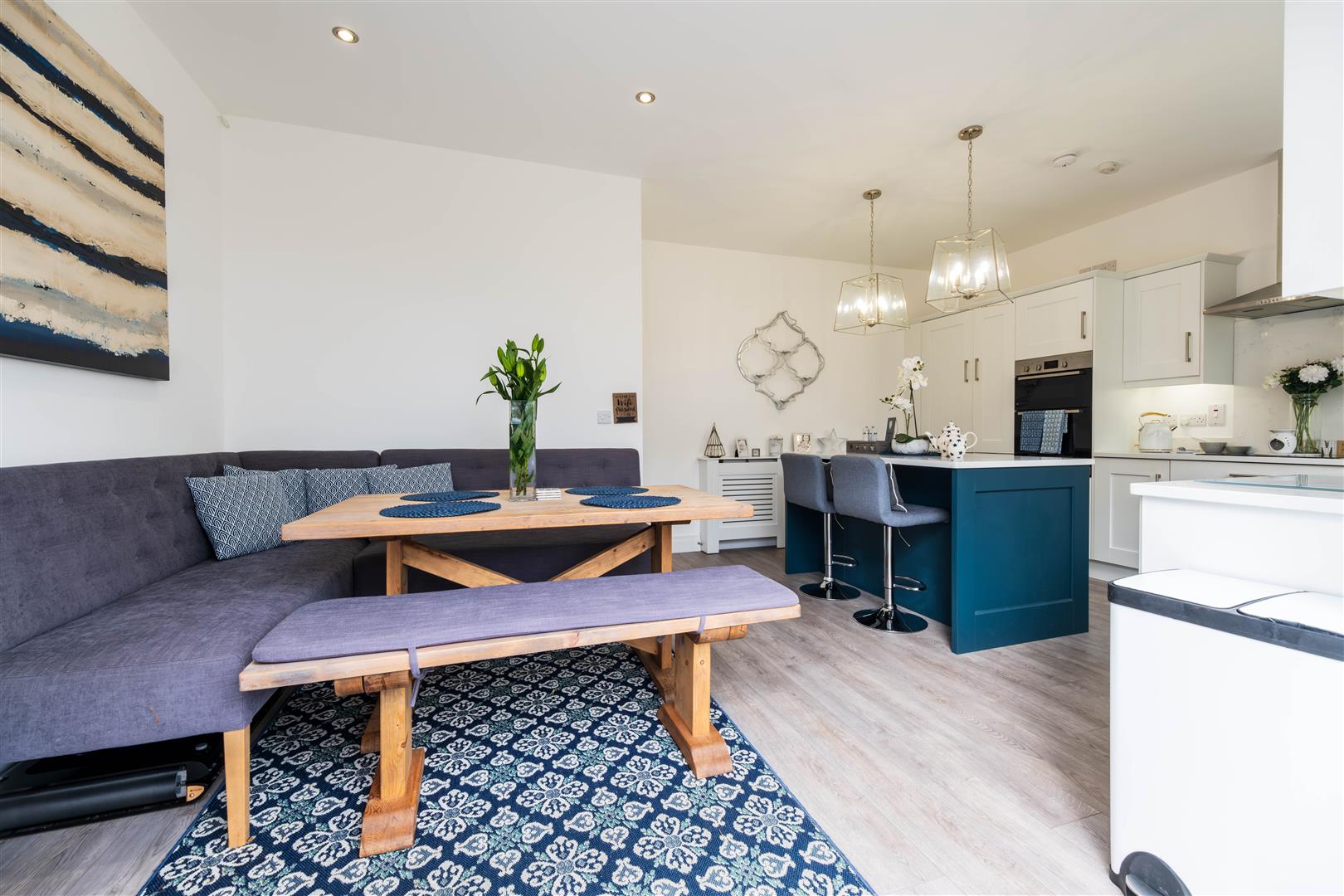 - Open-plan kitchen/dining area with central island and integrated appliances