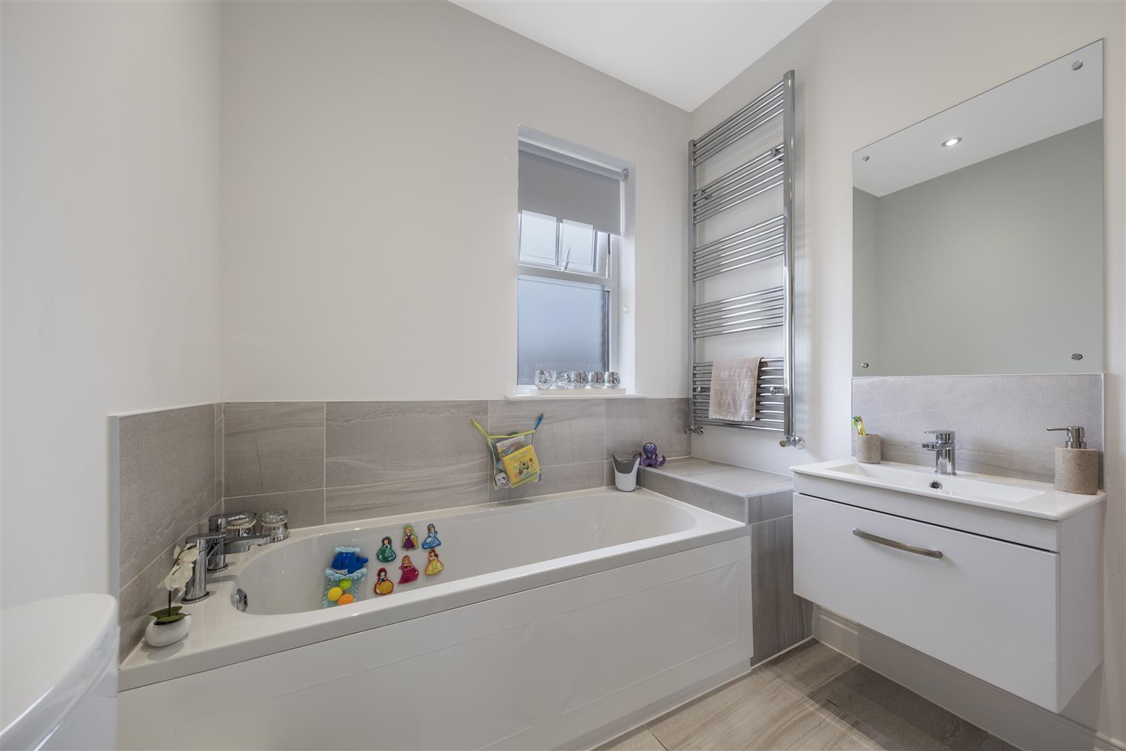 - Stylish family bathroom with freestanding bath and contemporary tiling
