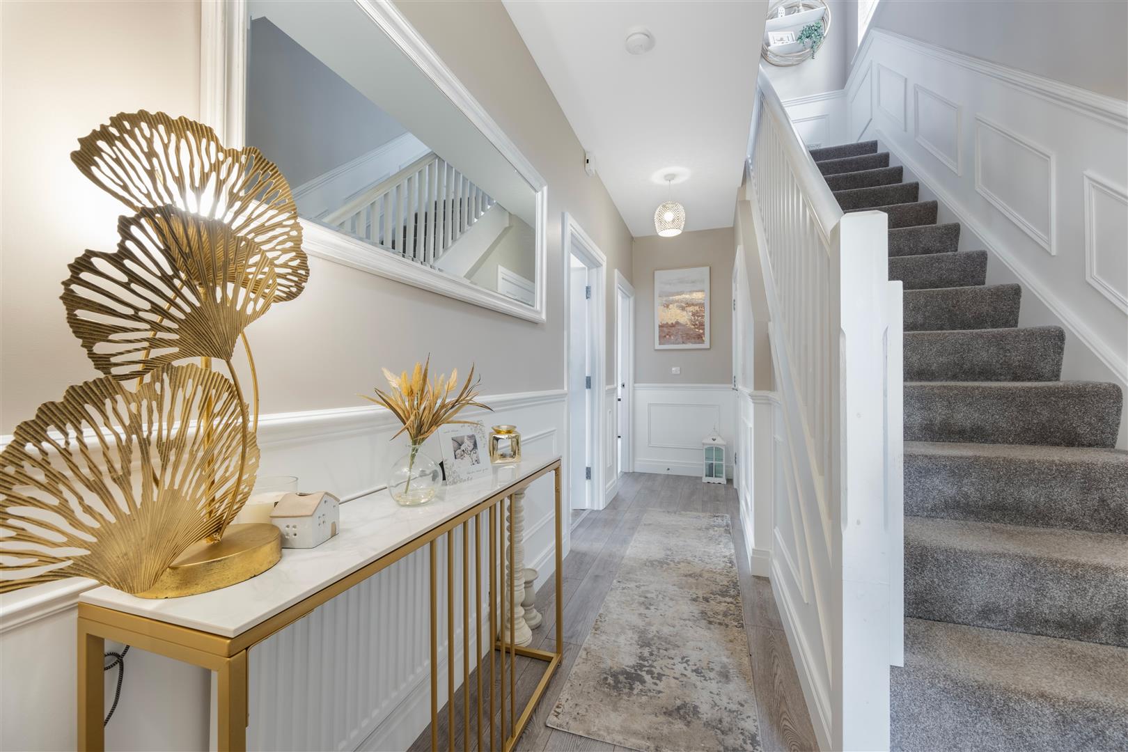 Internally, the accommodation features three well proportioned bedrooms including a master with ensuite, a bright open plan kitchen/dining area with integrated appliances and a central island, a spacious reception room with media wall, and quality finishes such as luxury tiling and contemporary fixtures.