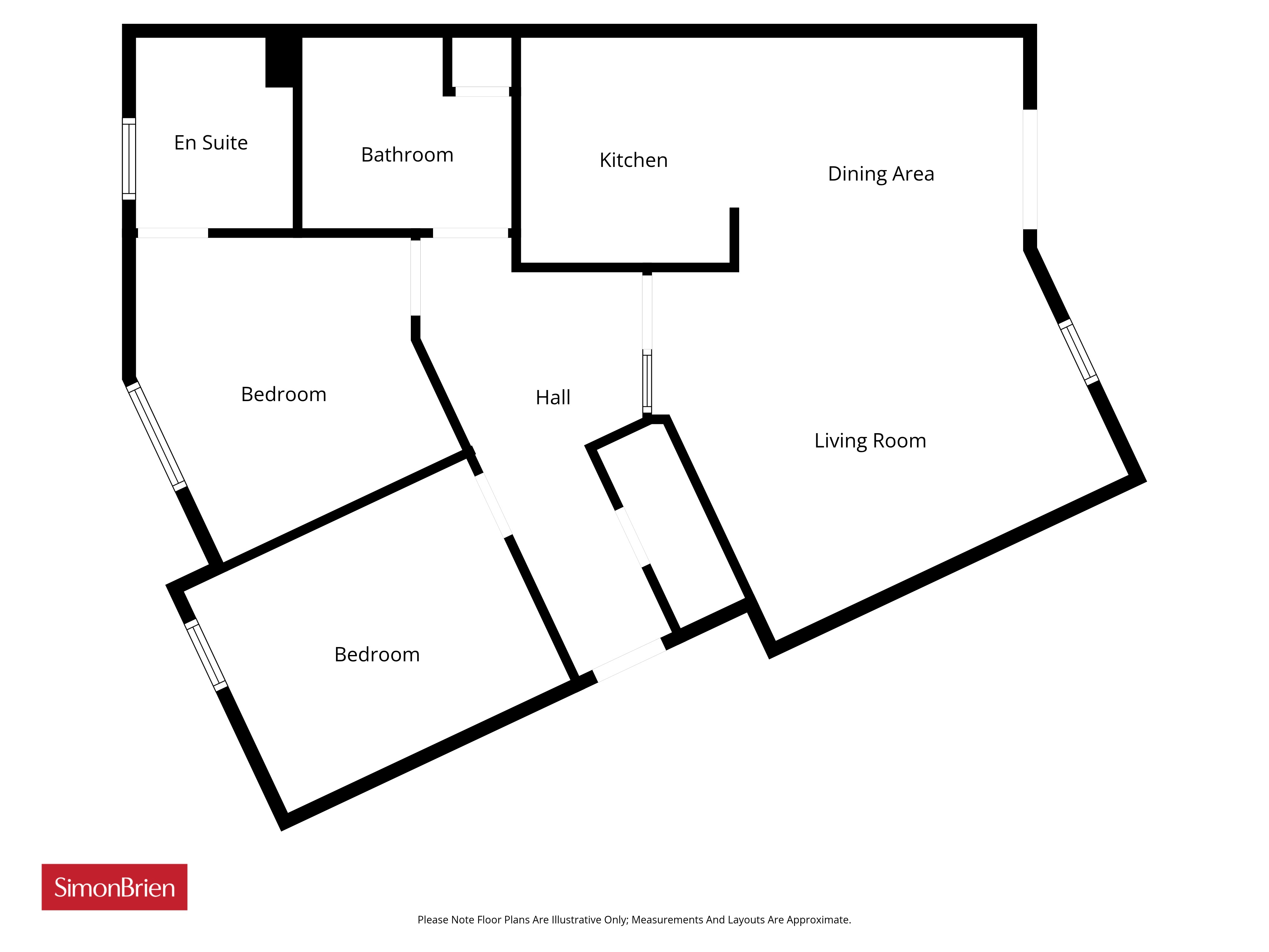 This particular third floor apartment comprises entrance hall with built-in storage, living/dining area open to modern fully fitted kitchen with range of appliances, two double bedrooms (master with ensuite) and main bathroom in white suite.