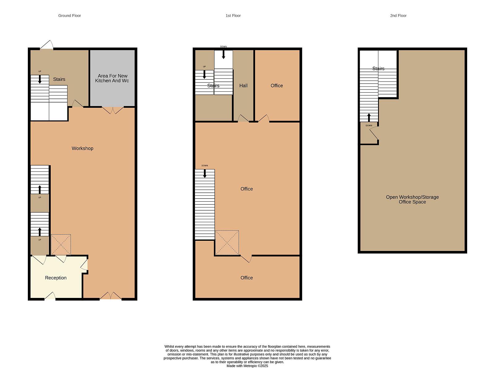 The property offers flexible office/storage/workshop accommodation with a gross internal area of c 252 sq m / 2700 sq ft over ground and first floor levels, with additional open plan office/storage/workshop area of 91sq m/ 980 sq ft at second floor level.