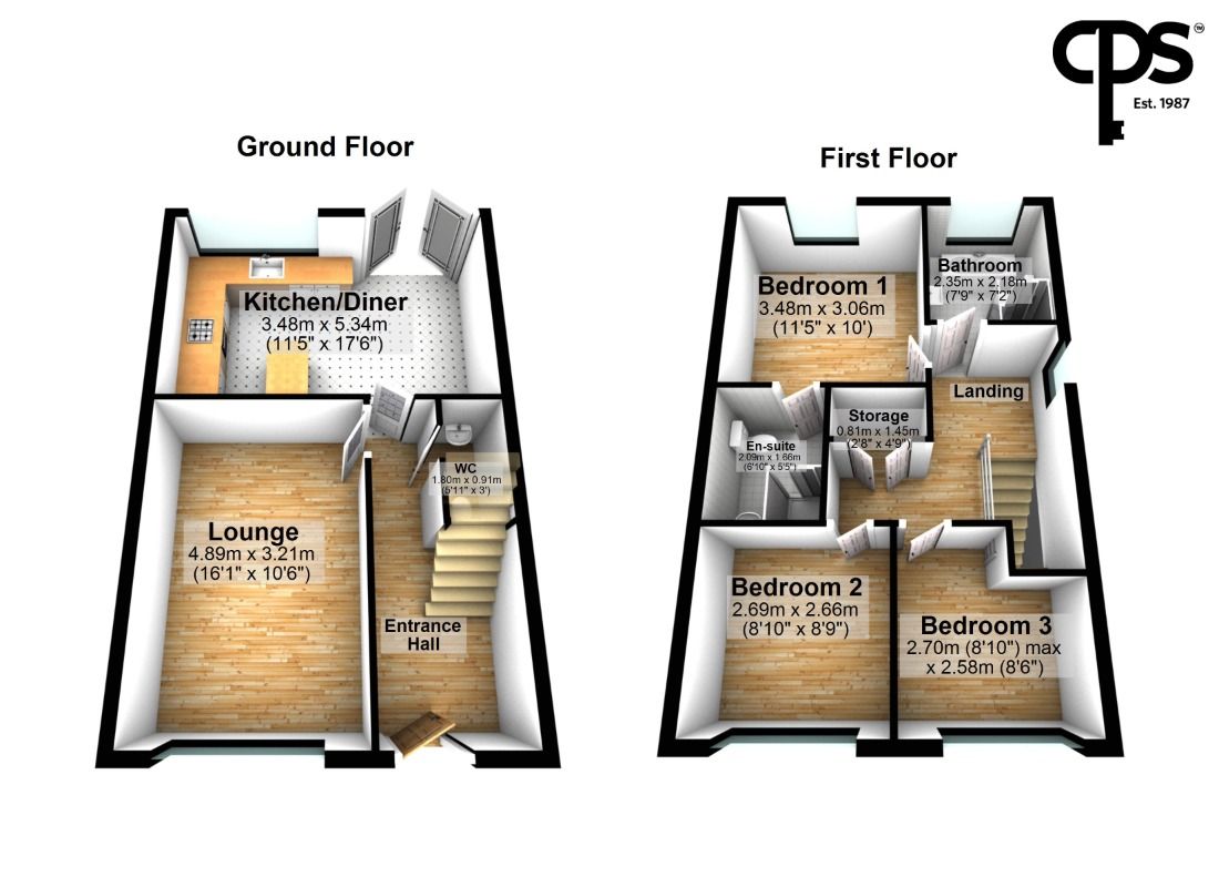 The ground floor of this stunning property features a bright and spacious lounge, a modern kitchen/dining area with integrated appliances and excellent storage, and a convenient downstairs WC. Upstairs, there are three well-proportioned bedrooms, including a master with ensuite, and a contemporary family bathroom with both a bath and separate shower.