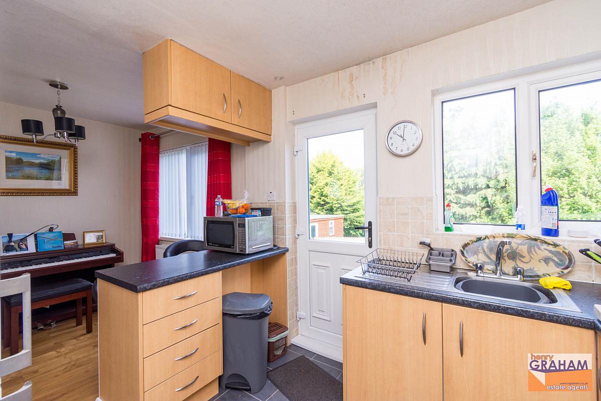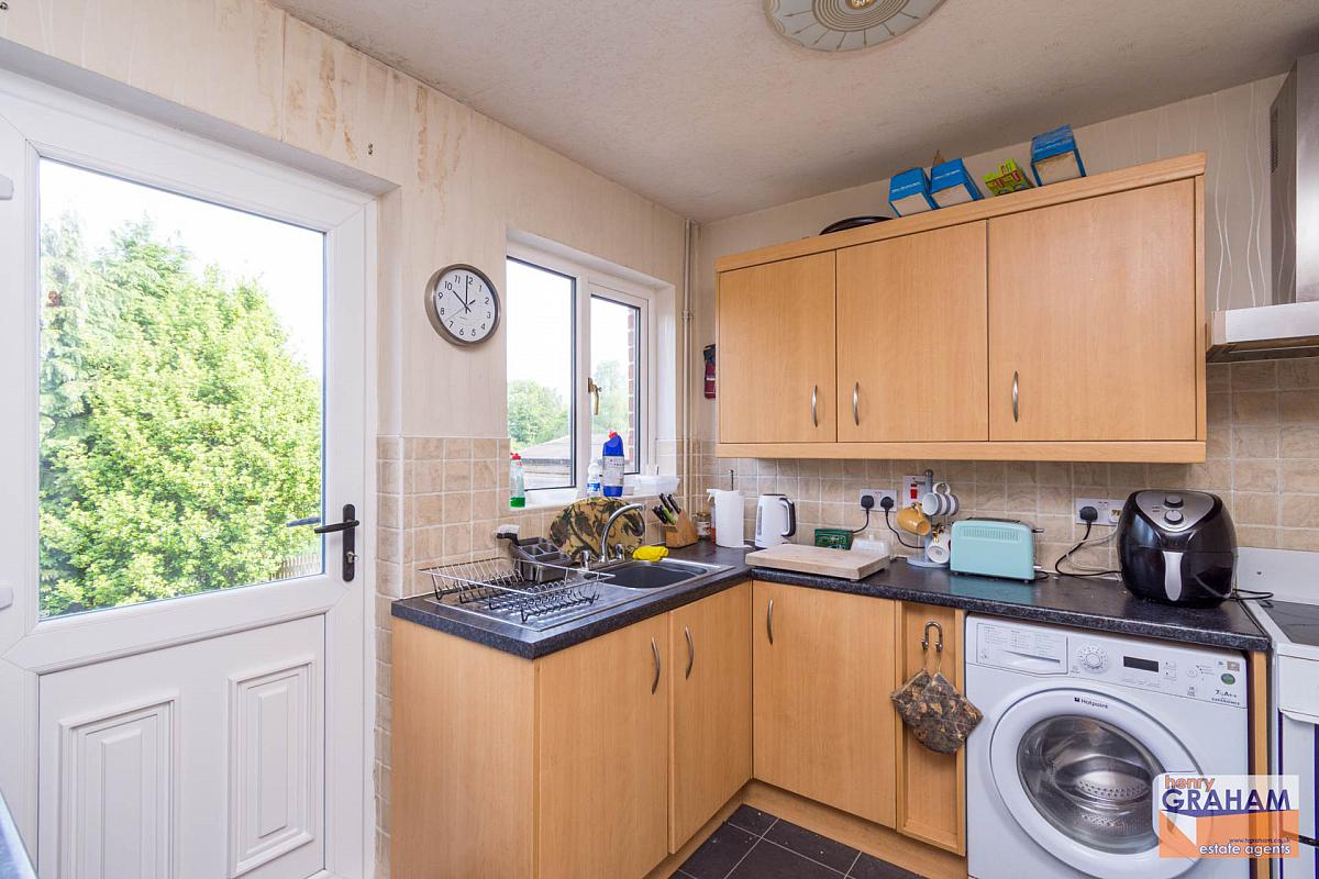 Range of high and low level units. Round edge work surfaces. Single drainer stainless steel sink unit with mixer tap. Part tiled walls. PVC double glazed back door. Cooker, Fridge/Freezer and Washing Machine included in sale, please note, the owner will not warranty these items.
