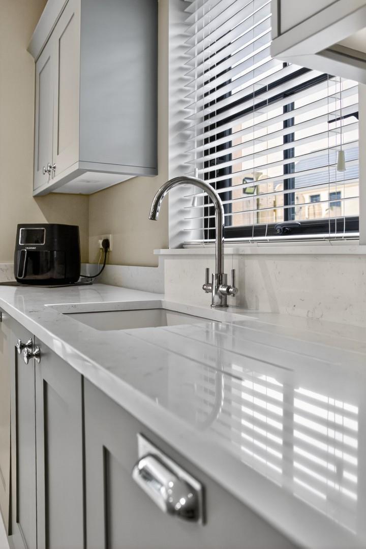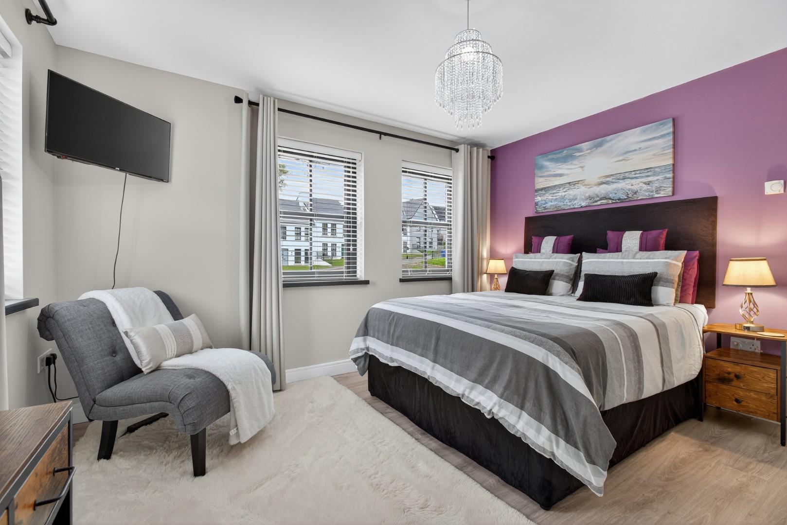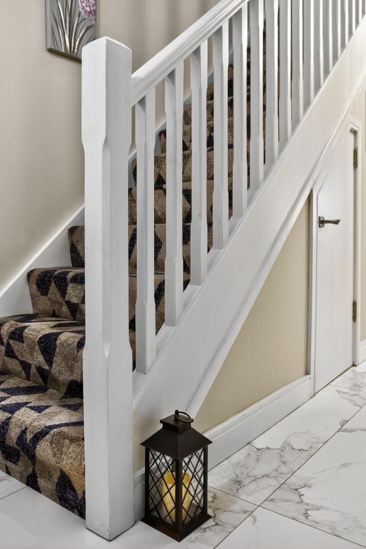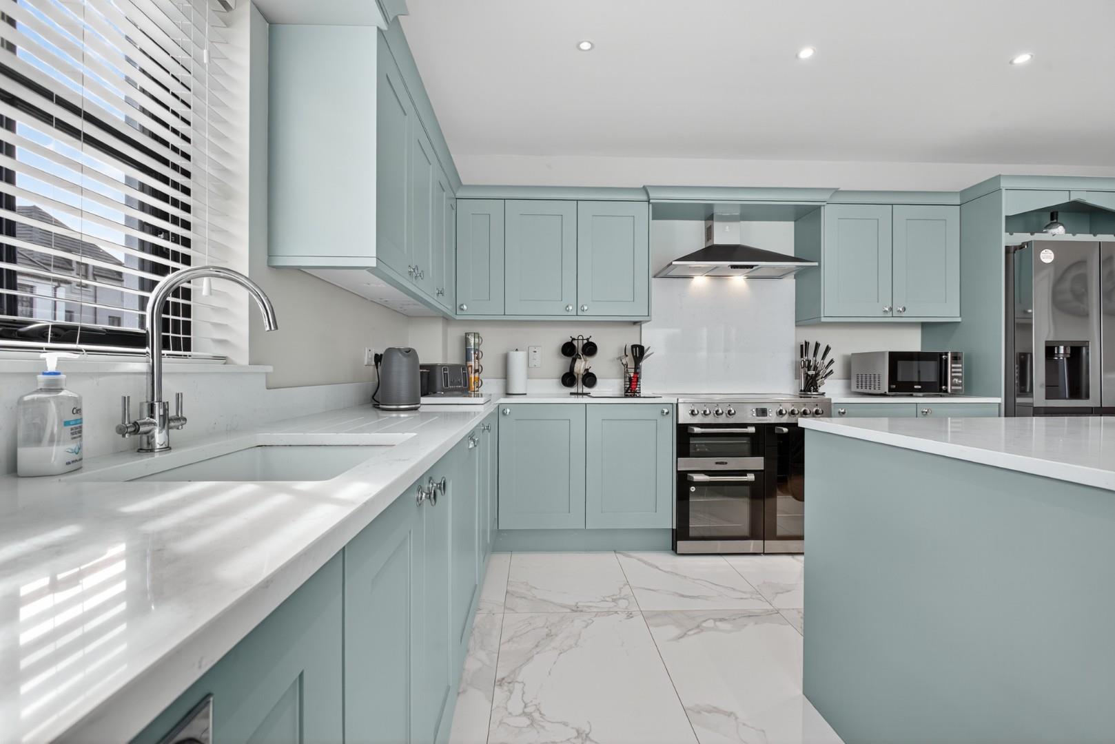 The property boasts a host of high-quality internal and external features, including a private driveway, enclosed rear garden, paved pathways, front door lighting and a modern designer kitchen. Inside, you'll find stylish tiling and wooden floors throughout, solid wood internal doors, ample storage, TV points in all bedrooms, and a contemporary media wall with an electric fire in the living room.