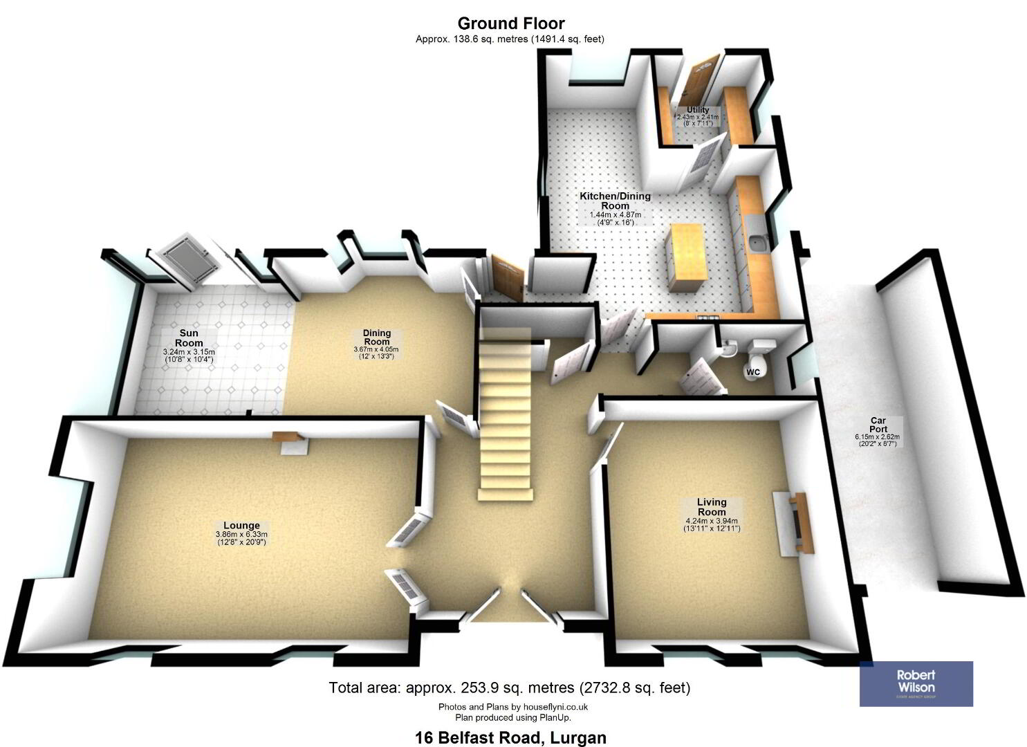 Accomodation comprises; Entrance Hall, Lounge, Living Room, Dining Room, Sunroom, Kitchen/Diner, Utility Room, wc, 5 Bedrooms (Main with Walk-in-Wardrobe & En-Suite) Bathroom, Study and Sauna.