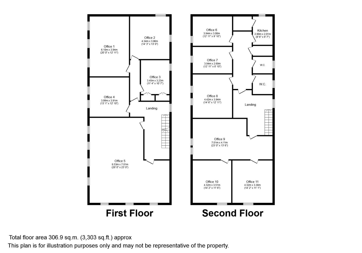 Featuring its own entrance off Market Street the building has a total of eleven offices spread over two floors with two toilets and a shared kitchen.