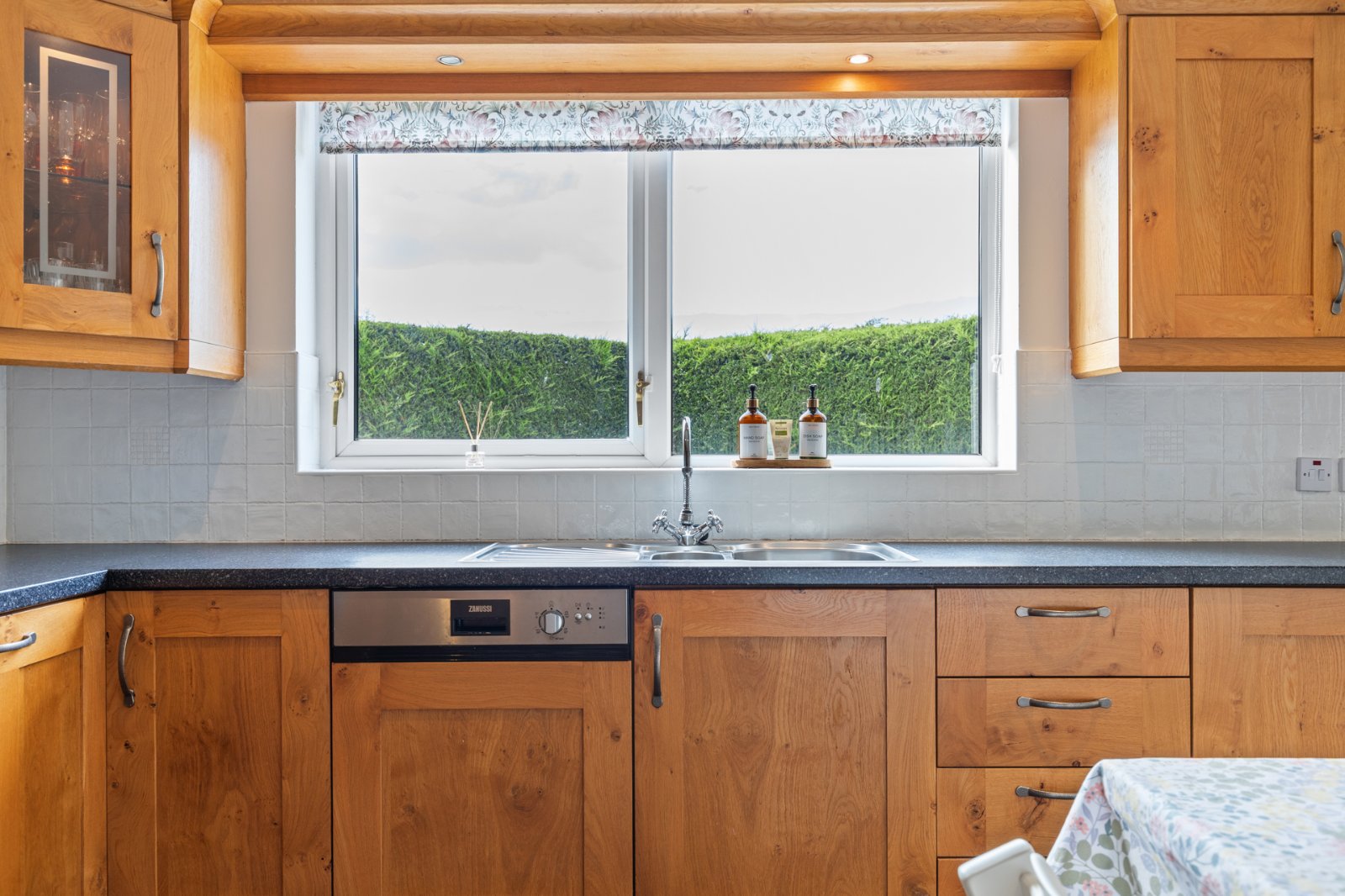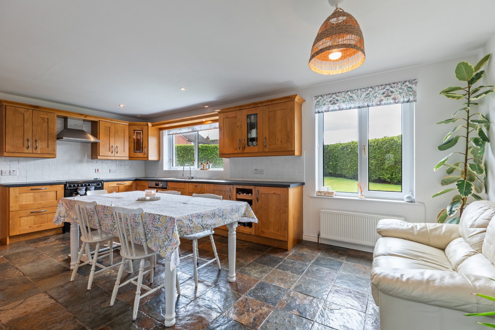 Excellent range of high and low level units. 1.5 bowl single drainer sink unit. Integrated fridge/freezer and dishwasher. Recessed for cooker.
