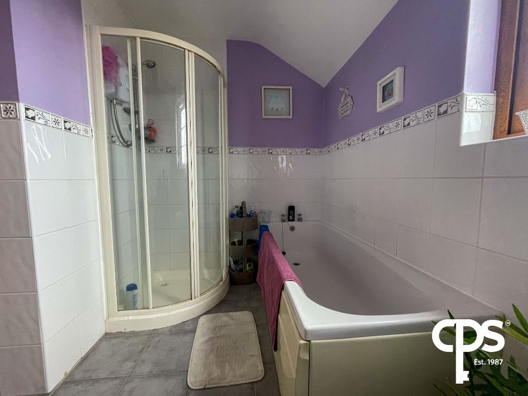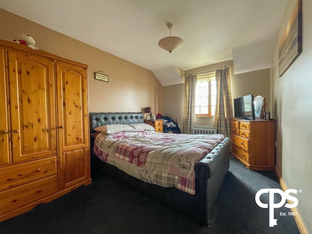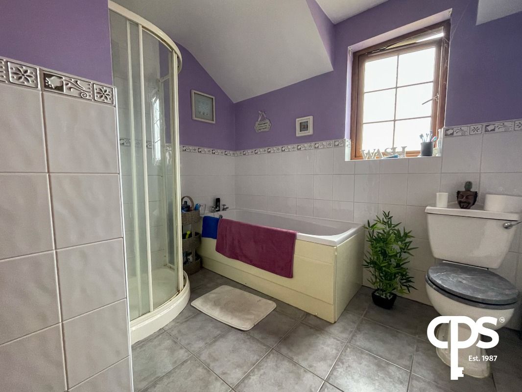 This family sized main bedroom comprises of a four-piece suite to include W/C, hand wash basin, corner shower
