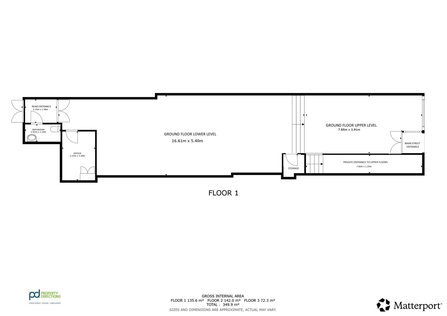 Expansive floor featuring a cloakroom, office and double doors leading to rear entrance porch where there is a bathroom and an external enclosed rear yard. Access to Valentia Place running behind building