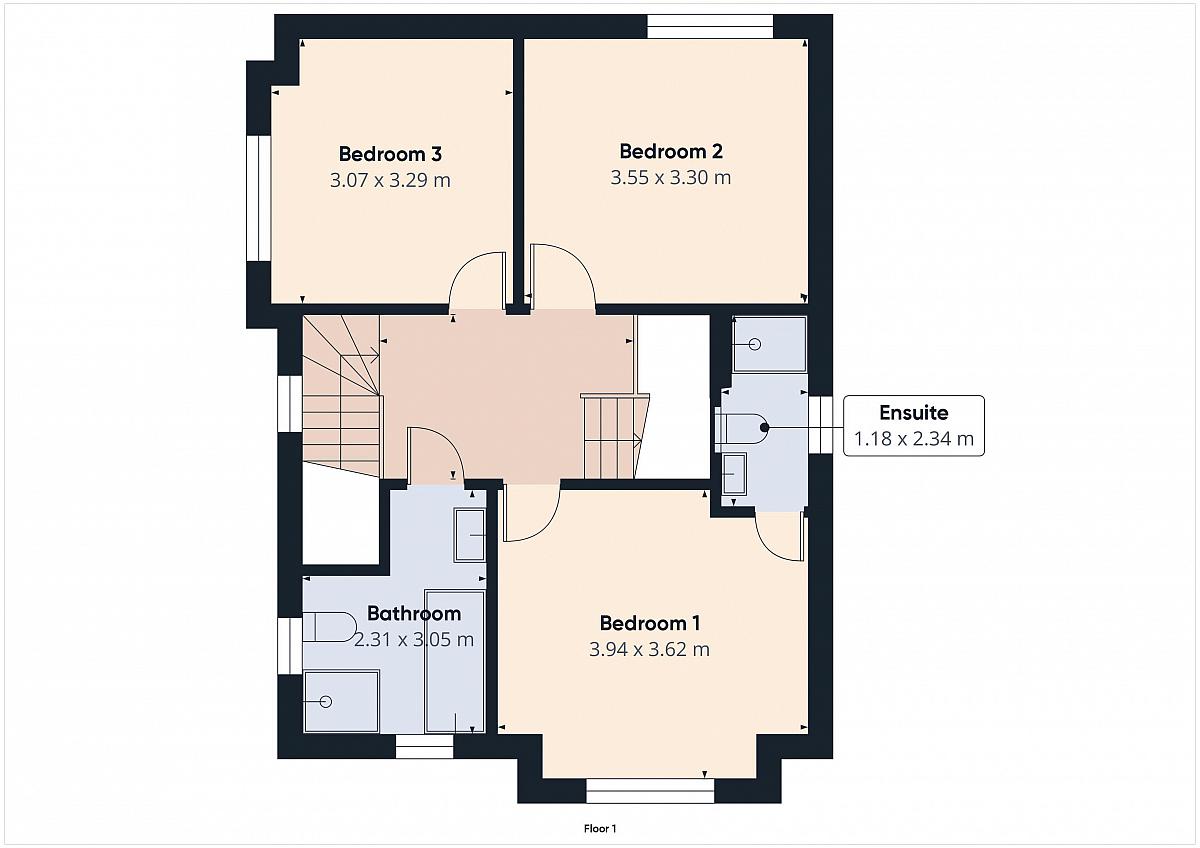 Bedroom 1 12'11'' X 11'11'' (3.94m X 3.62m)