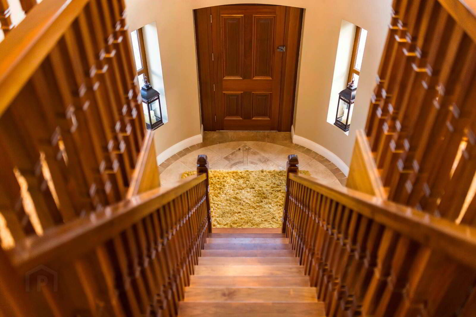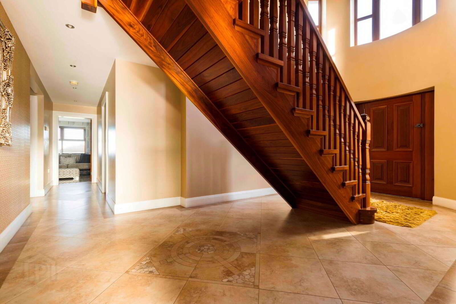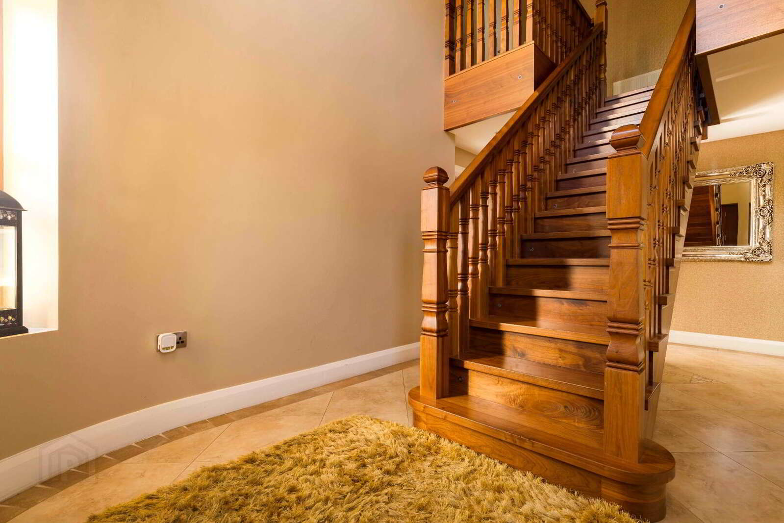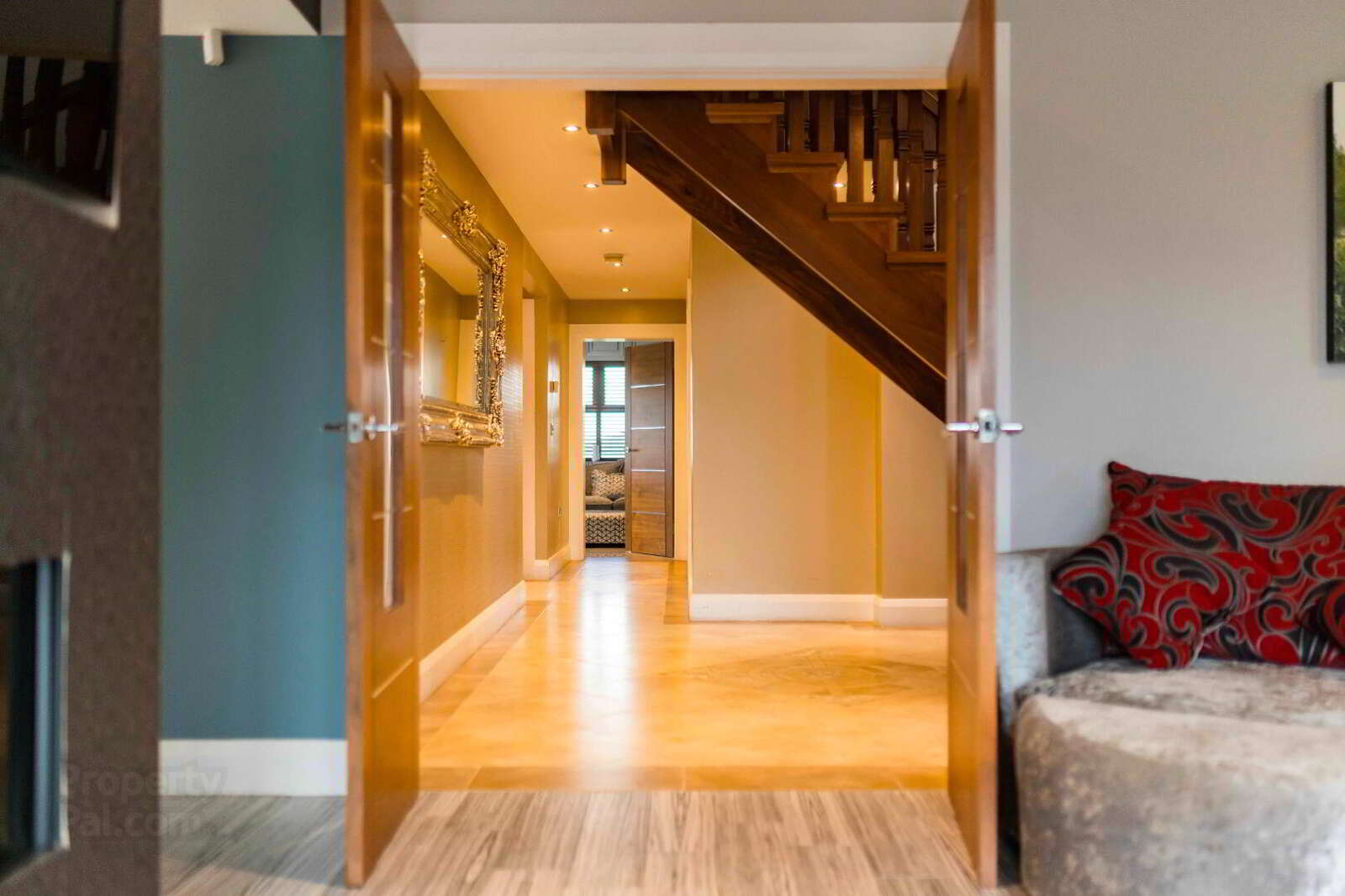 Hardwood front door with screen leading to double height atrium with first floor level windows. Feature walnut staircase with LED lighting. Feature stylish drop light fitting. Porcelain tiled floor. Alarm key pad. Smoke alarm. Telephone point. Hotpress and cloaks off main hallway. Spot lighting.
