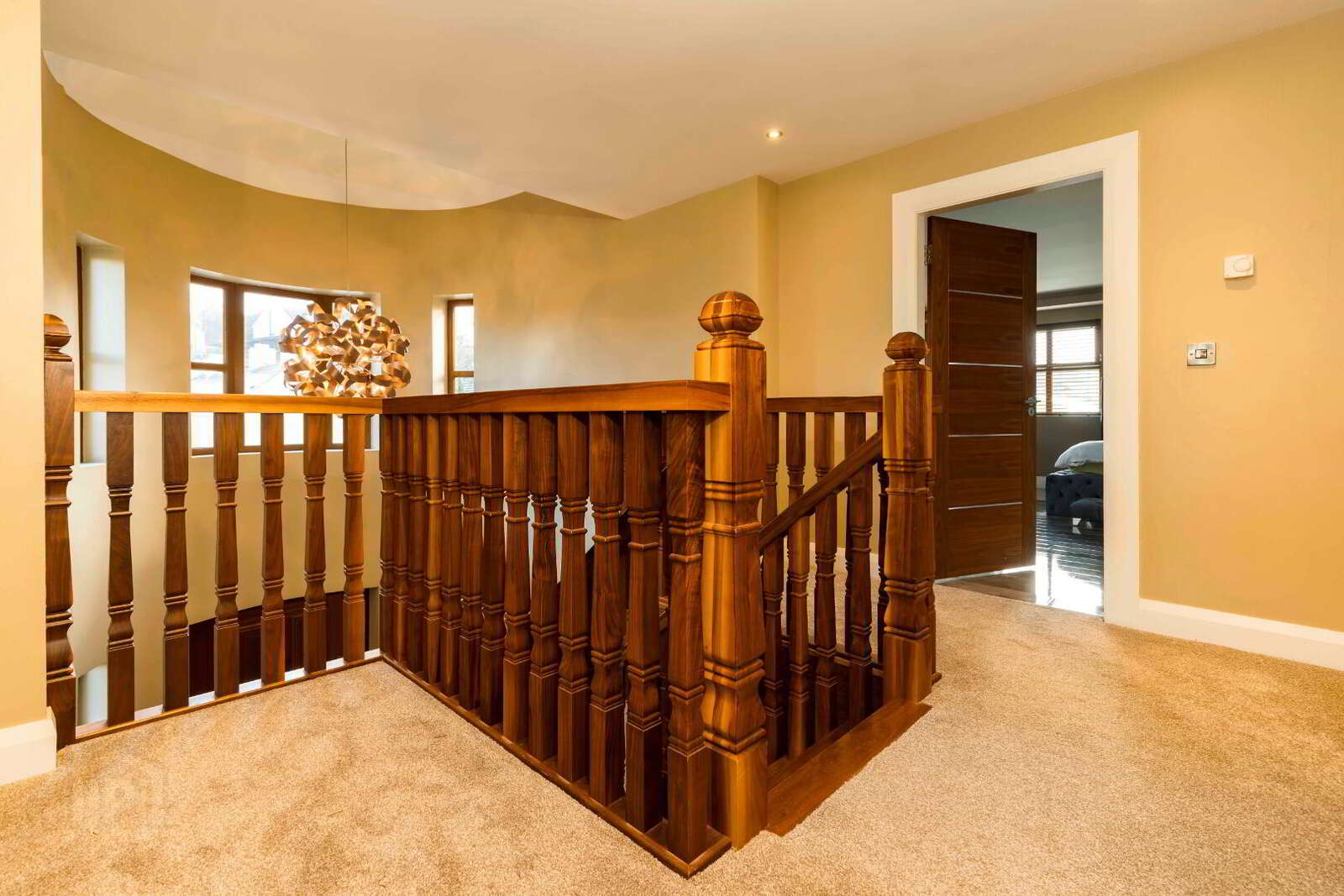Gallery mezzanine area with feature. Carpet laid to floor. Feature light fitting. Spot lighting. Smoke alarm. Attic access.
