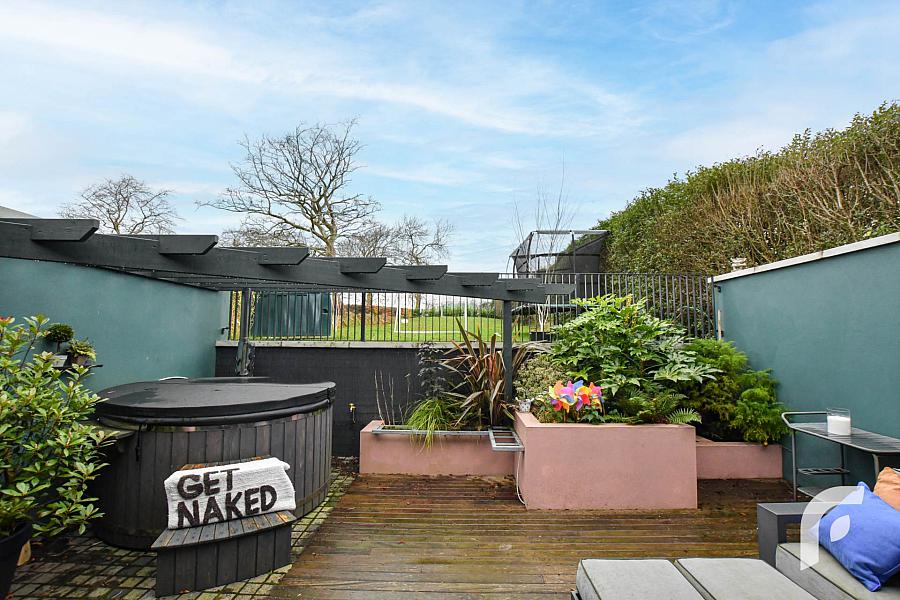 To the rear of the property, is a substantial garden finished in lawn, with an impressive garden room and relaxation area.