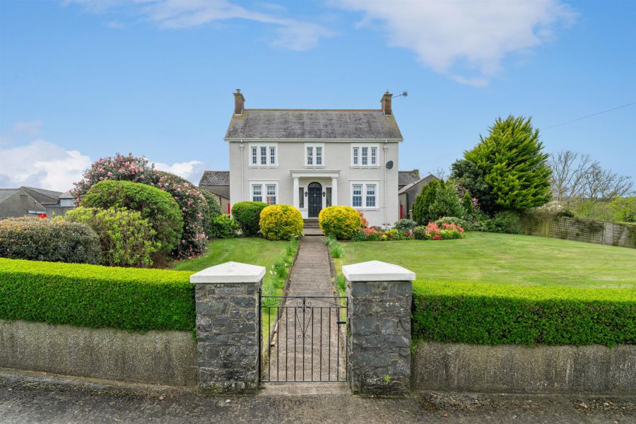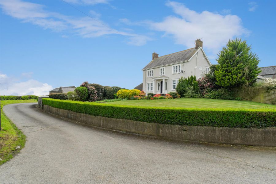 Landscaped areas in lawn, mature plants, shrubs, hedging and trees, pond, entertaining areas, views over surrounding fields and towards Scrabo Tower and Newtownards, courtyard area with outbuildings, outside lights, outside tap, vegetable patch.