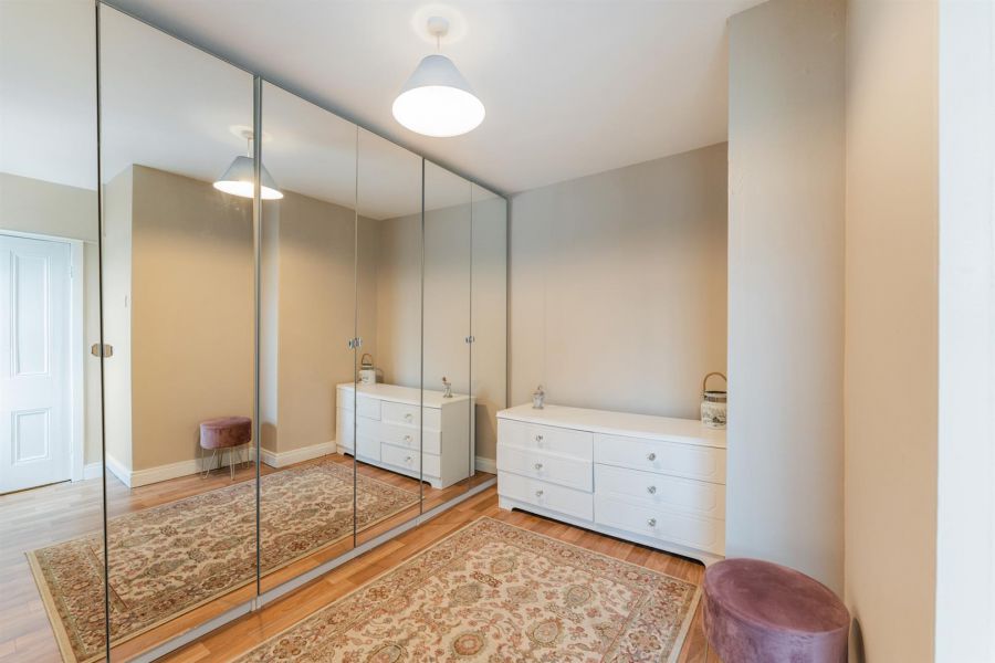 Feature corniced ceiling, dual aspect views, wood laminate flooring, picture rail, feature fireplace with marble hearth, decorative tiled inset, carved marble surround and mantle.