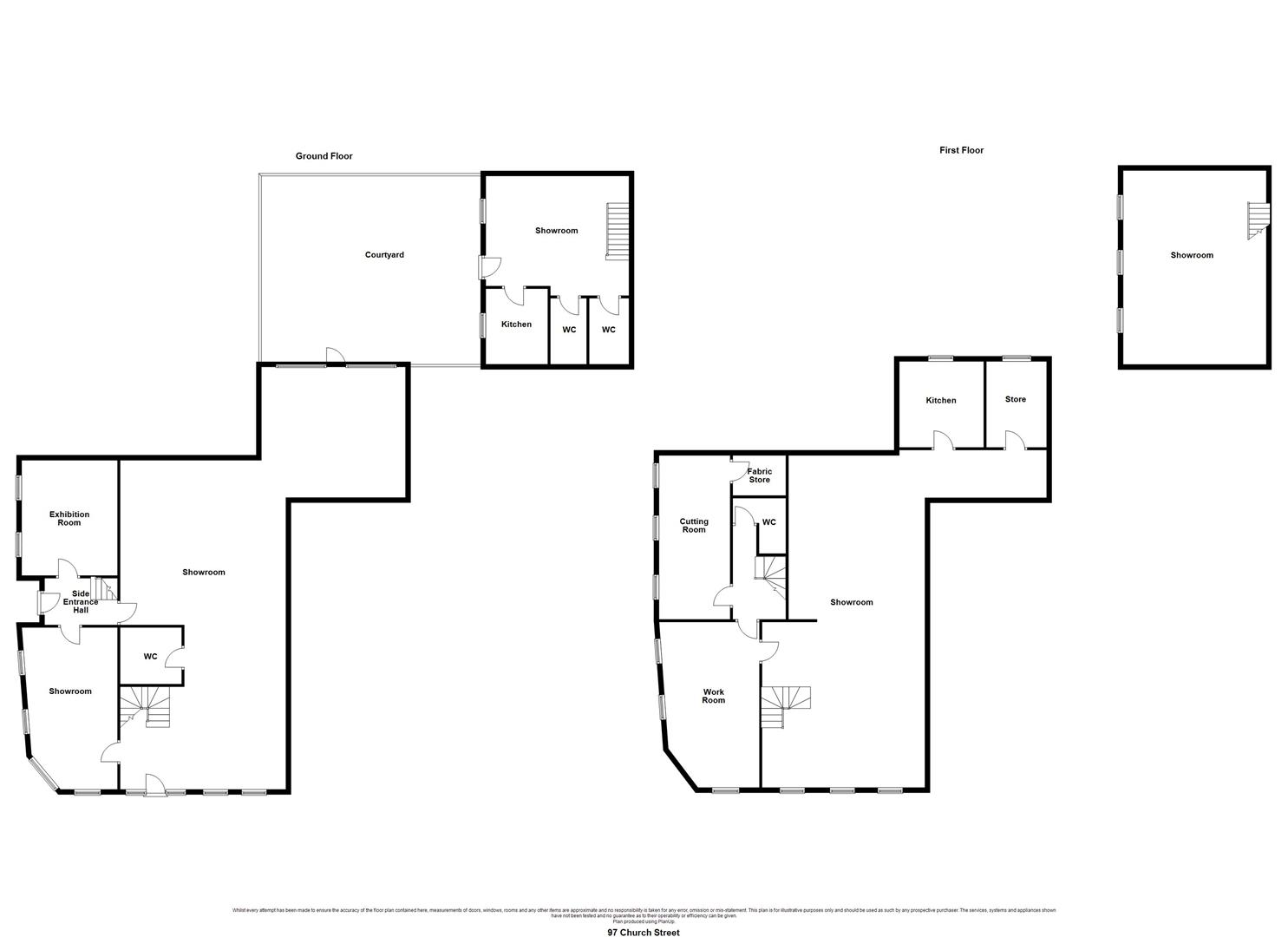 Ground floor comprises front entrance off Church Street leading to main showroom. Further areas include additional front show room, rear exhibition room, side entrance off Frederick Place, rear store leading to enclosed courtyard.