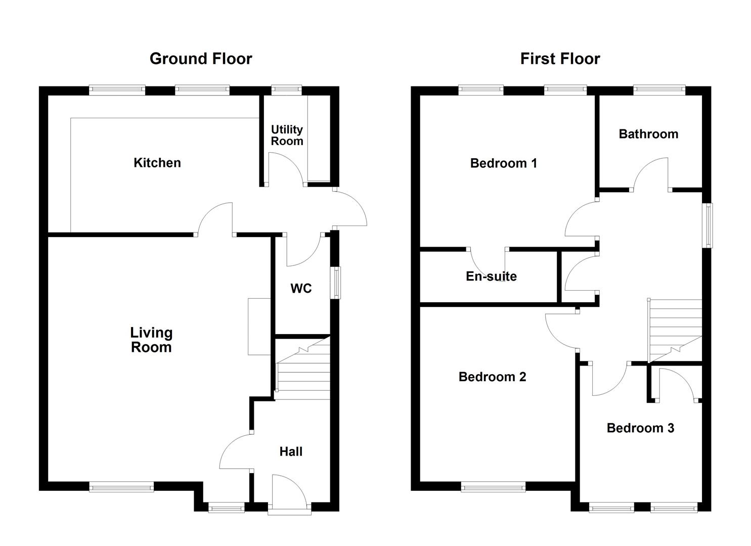 The ground floor features an entrance hall, a spacious living room with a feature fireplace, a modern fitted kitchen with integral appliances, a utility room plumbed for appliances, and a downstairs W/C.