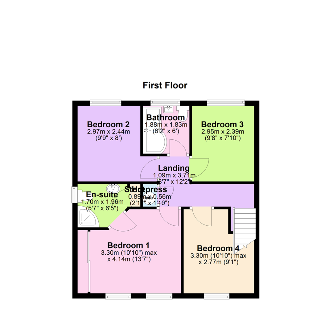 Bedroom 1 10'10" X 13'7" (3.30m X 4.14m)
