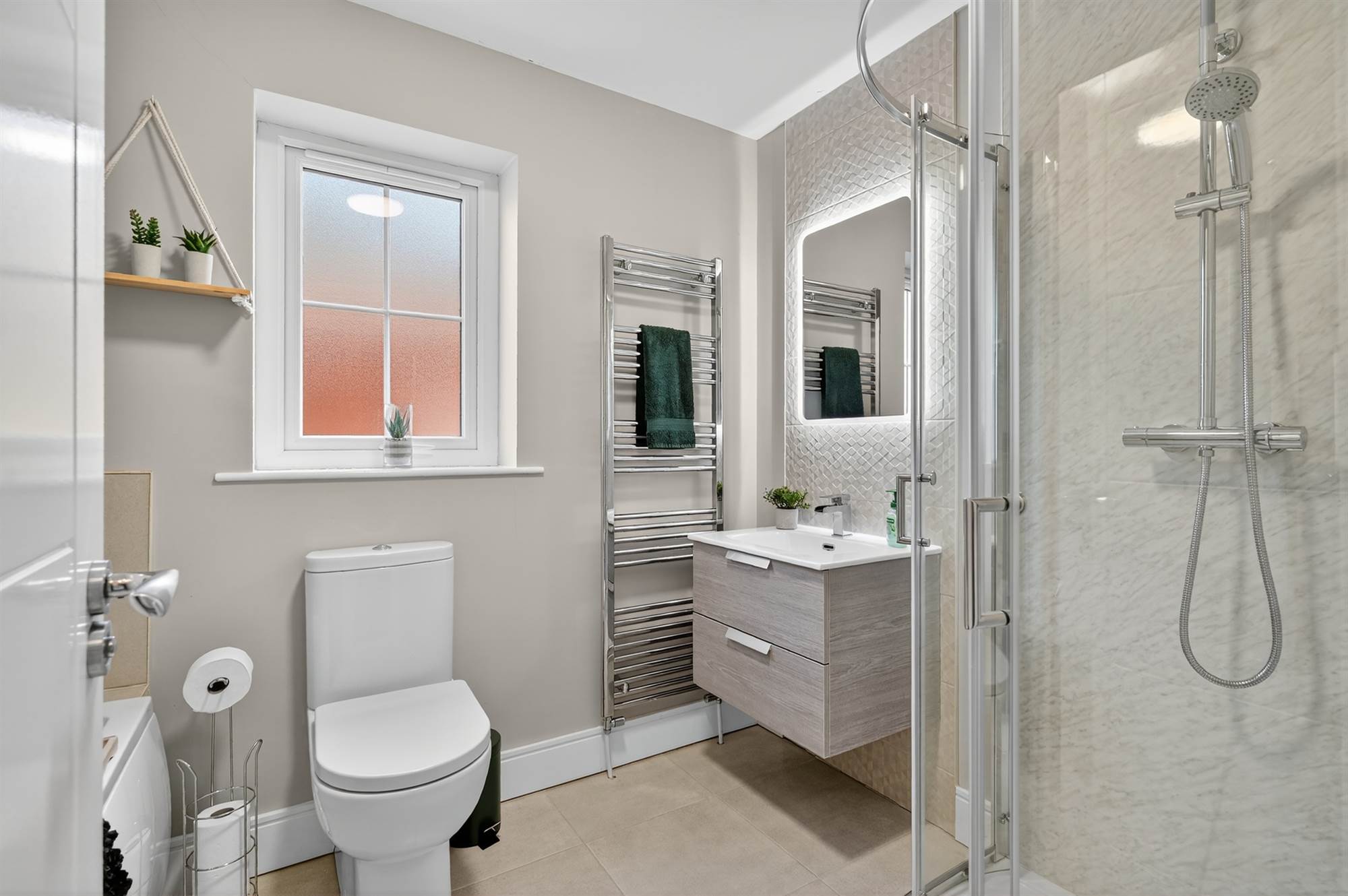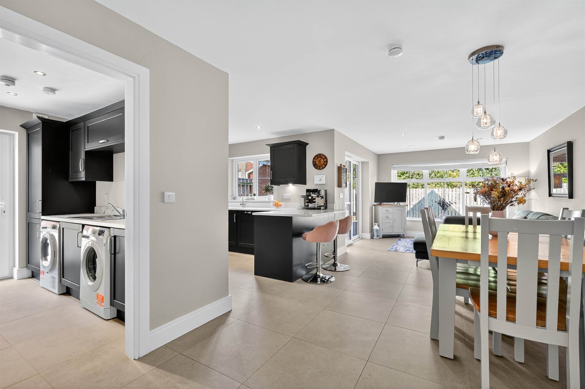 Upstairs, there are four well-proportioned bedrooms, including a main suite with its own ensuite shower room, ensuring a private retreat at the end of the day. A contemporary family bathroom and a convenient downstairs WC cater easily to the demands of a busy household, while a separate utility room adds welcome functionality. Every detail has been designed with everyday comfort in mind, from the flow of the layout to the practical storage solutions.