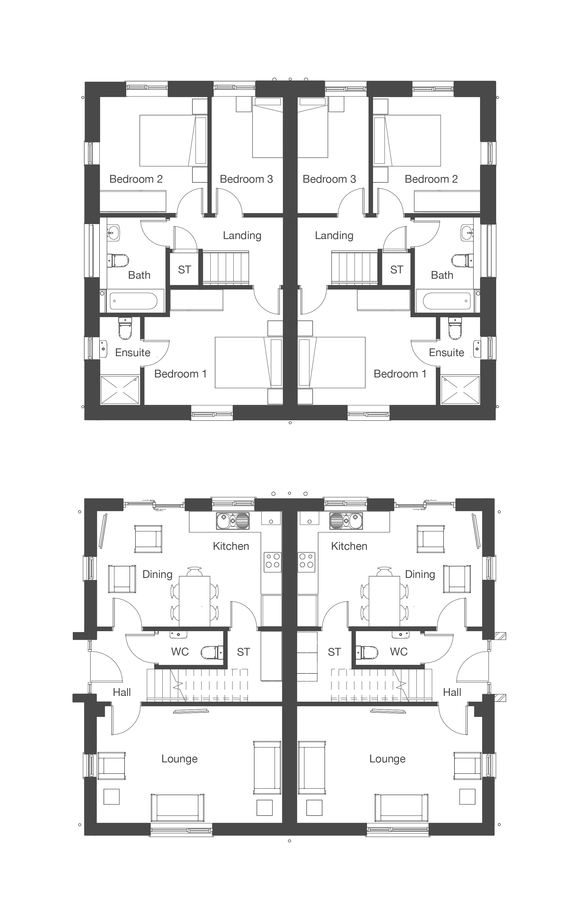 All walls and skirting boards will be painted white, giving you the final say over the internal finishes of your new home. And, as seen in our show home, internal doors are painted black, with black spindles and black ironmongery.