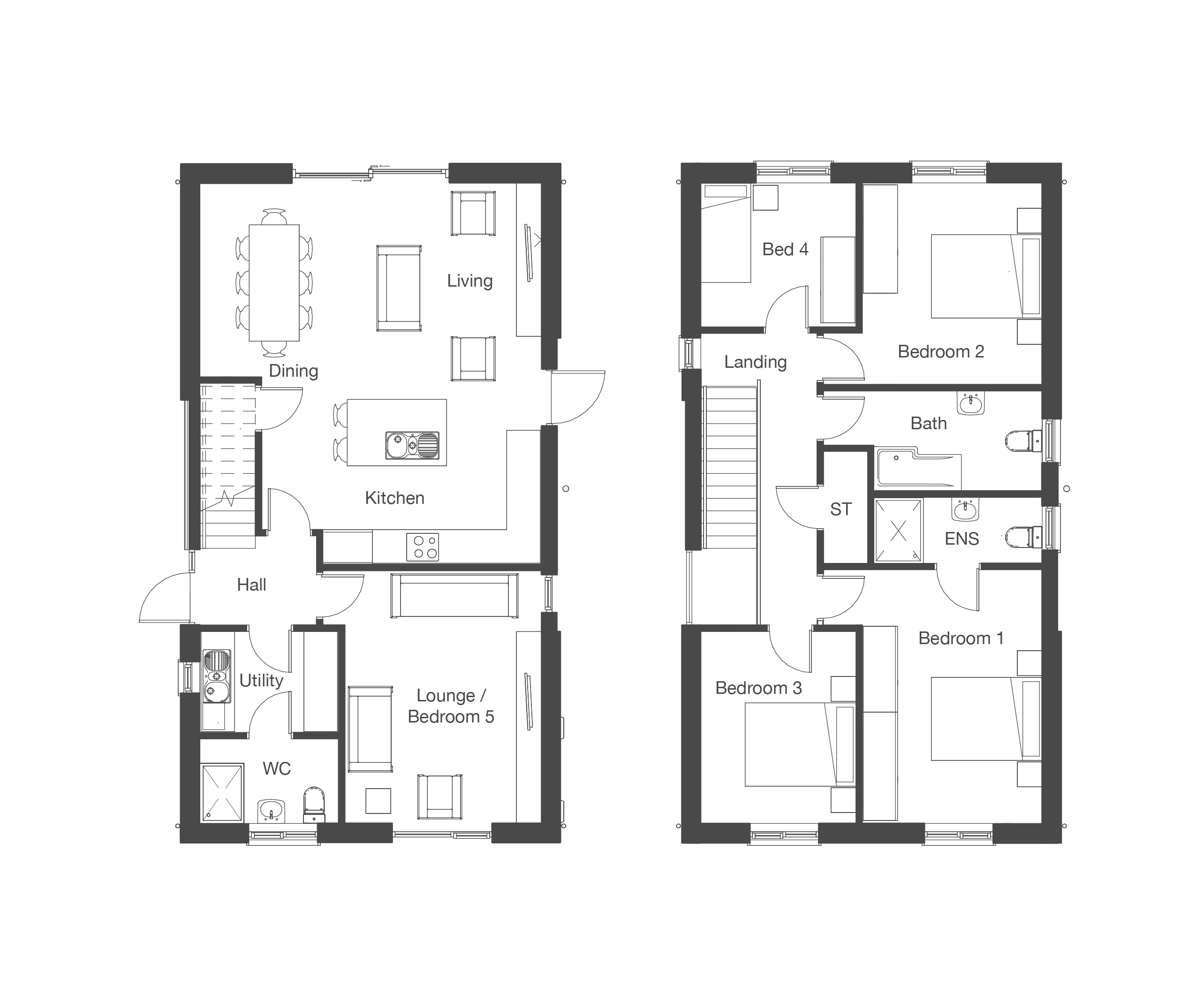of your new home. And, as seen in our show home, internal doors are painted black with black ironmongery and feature black stair spindles.