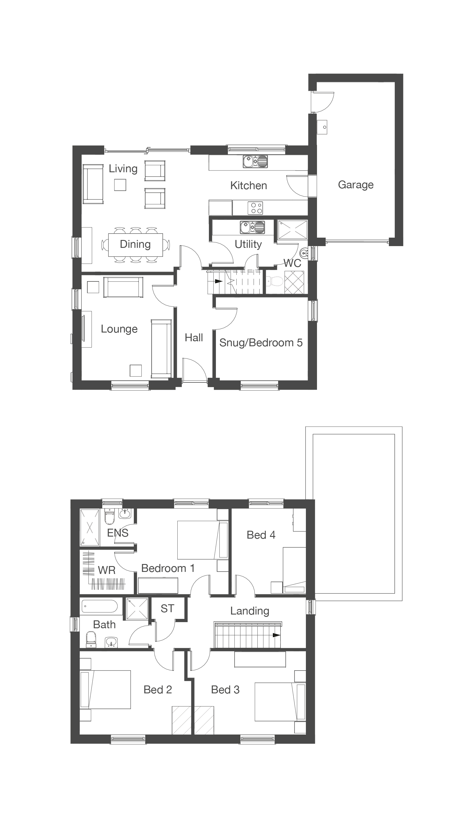 of your new home. And, as seen in our show home, internal doors are painted black with black ironmongery and feature black stair spindles.