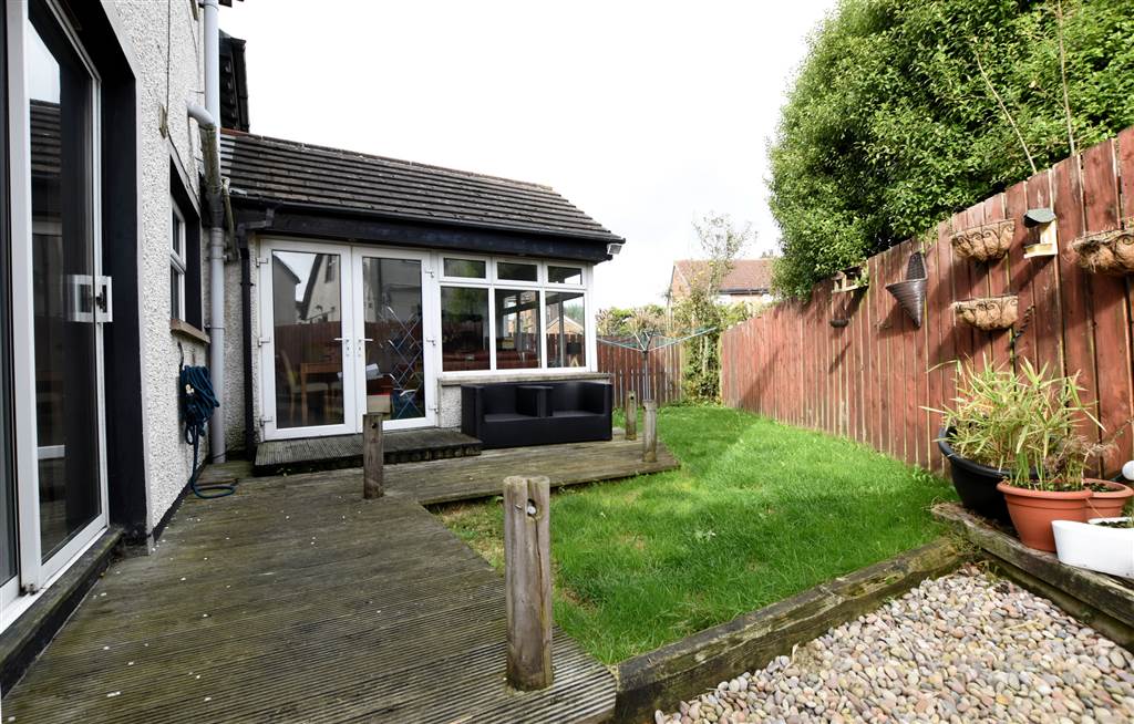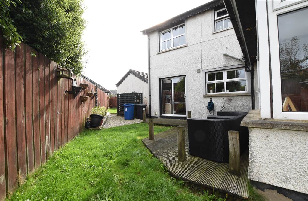 Front and rear gardens in grass with the back garden also having a patio area and outside water tap.