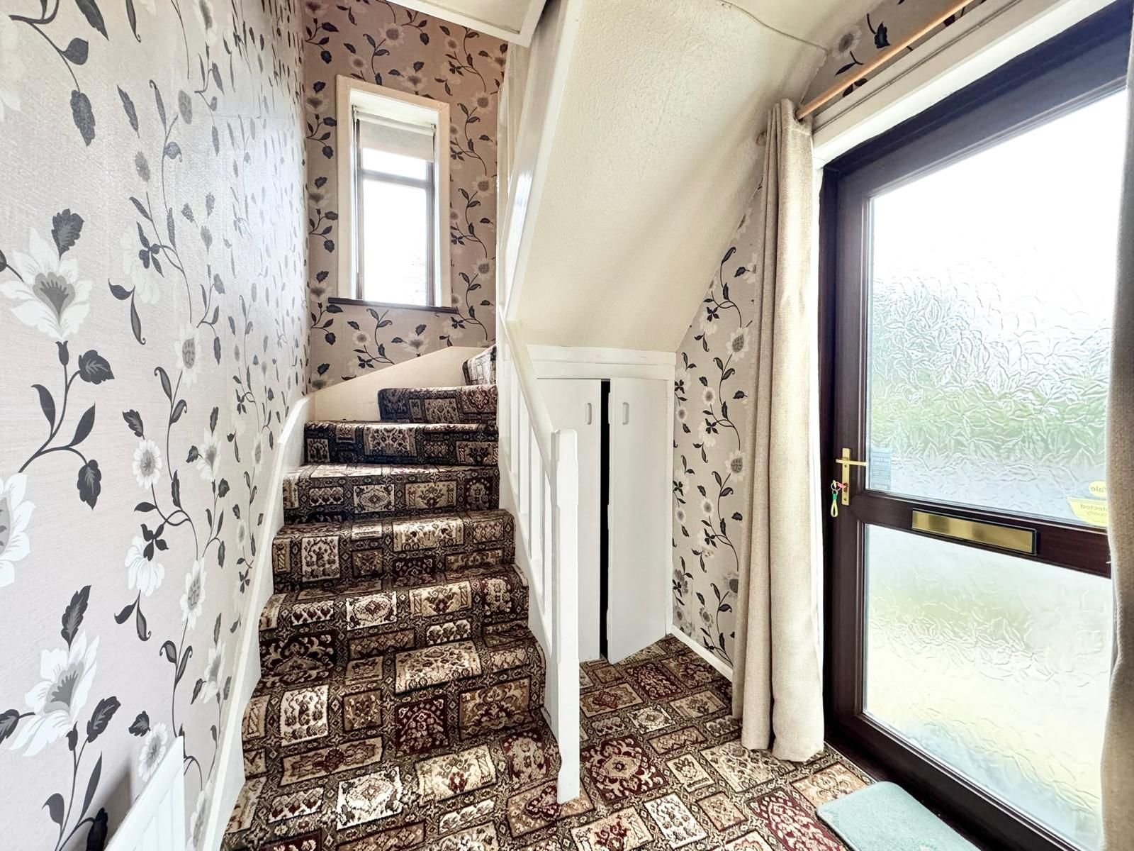 Stairs & landing with carpet. Hotpress.