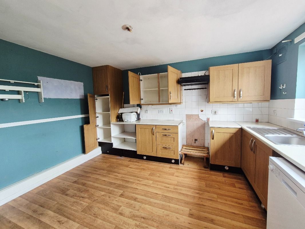 Excellent range of high and low level kitchen units, stainless steel sink and drainer. Laminate wooden flooring.