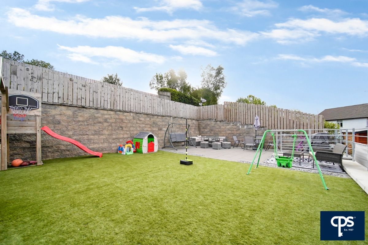 Externally, this home continues to impress. Set on an extensive elevated site, it offers ample tarmac off-street parking, a neatly maintained front garden laid in lawn, an enclosed rear artificial lawn and raised patio area, perfect for outdoor entertaining and for a children’s play area.