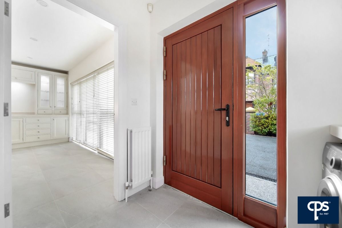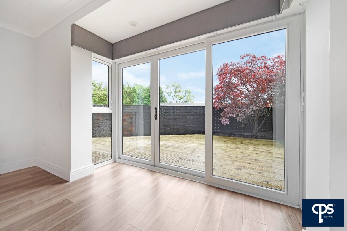 A bright and welcoming hallway leads to a stylish kitchen/dining area complete with a range of modern high and low-level units. The utility room is plumbed for white goods and accompanied by a convenient W.C. The spacious living room boasts a feature fireplace, built-in units, and sliding doors opening to a large, private decking area—ideal for family gatherings or summer evenings.