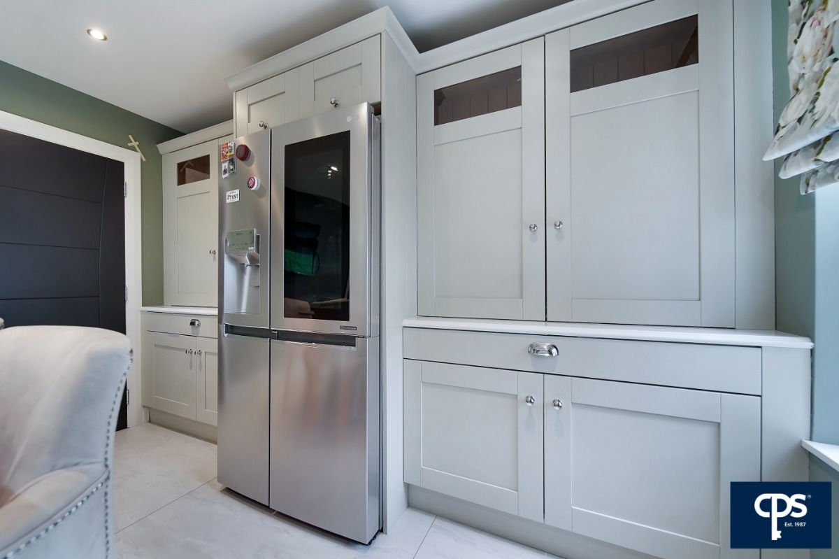 Additional features: quooker tap, stylish island unit, and recessed spot lighting for a bright, contemporary finish.