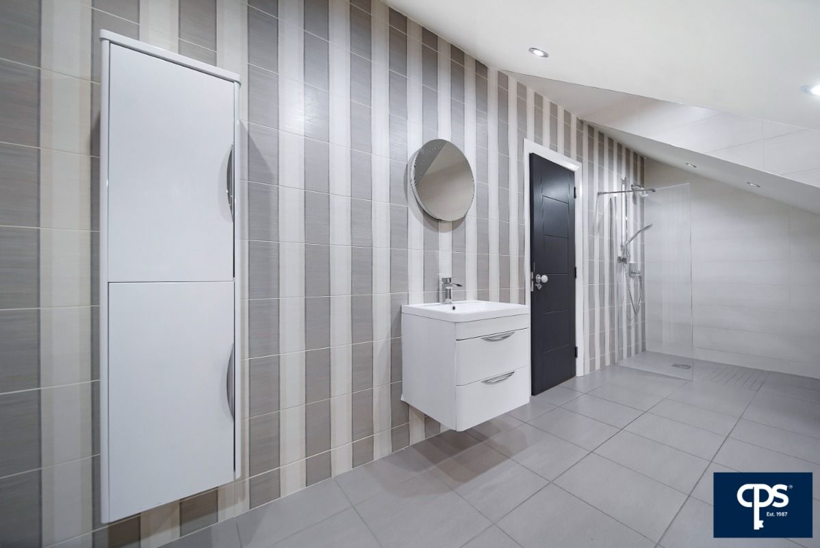 Modern design with walk-in shower, W.C., basin, and floating vanity unit. Fully tiled in both floor and walls for a sleek, easy-maintenance finish.