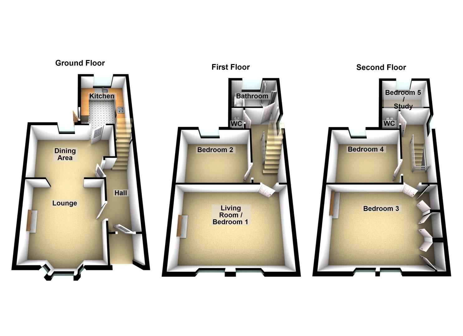 On the second floor there are three further bedrooms, one presently used as an office and w/c.
