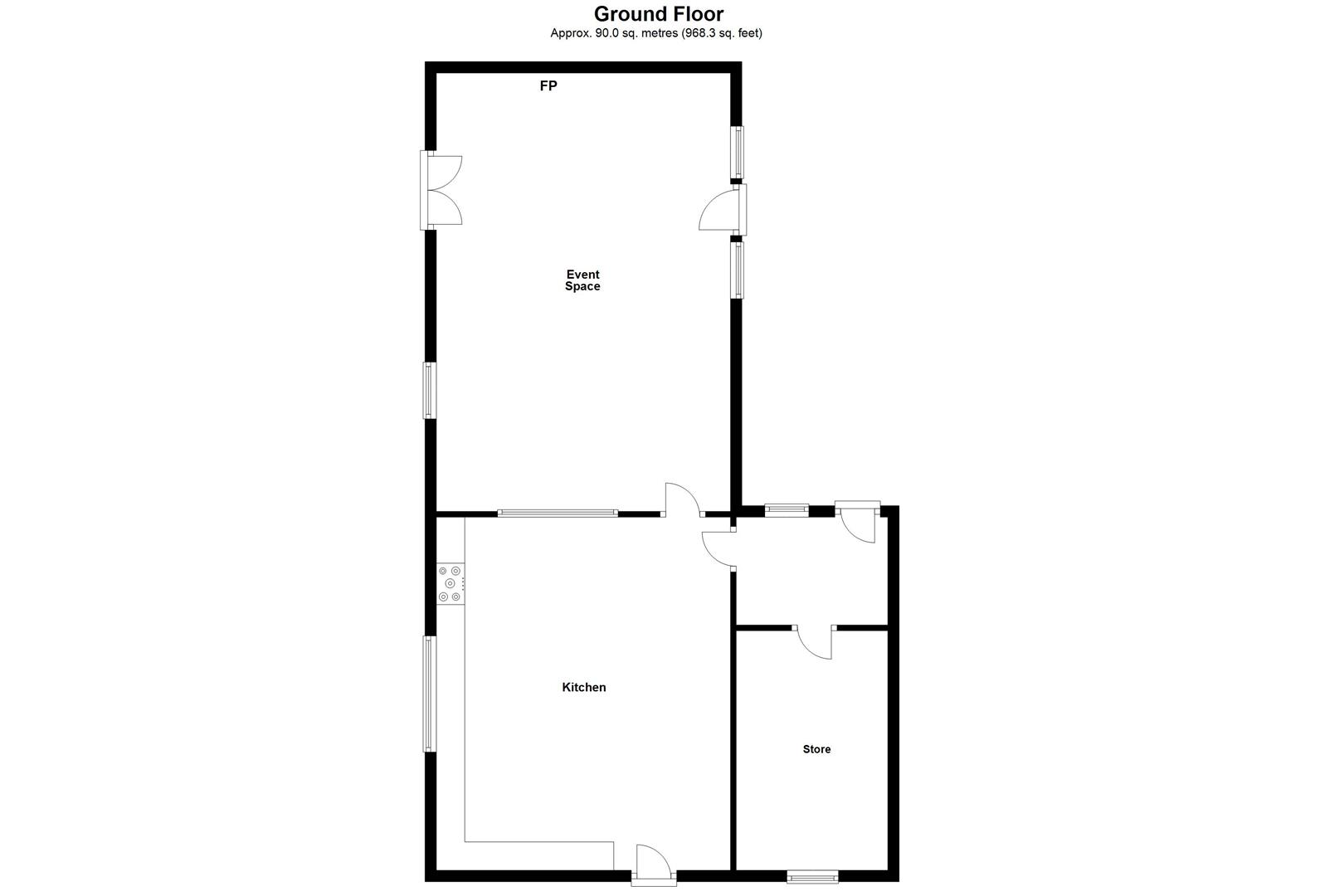 A rare opportunity to lease a fully equipped commercial kitchen, store with non-exclusive access to the event/dining space. A small toilet block is located at the property comprising of two unisex wc's one of which is an accessible wc. The property is fitted with a wood burning stove and two Herschel 2.7kw overhead infrared heaters in the kitchen. The property benefits from an adjoining shared car park.