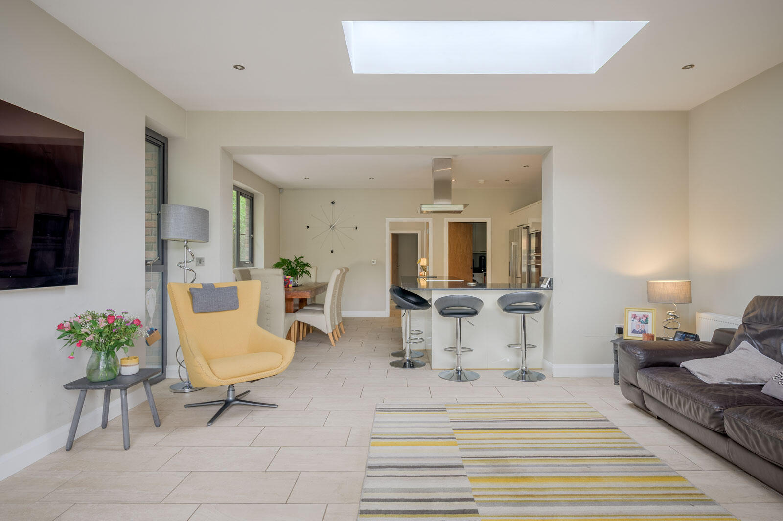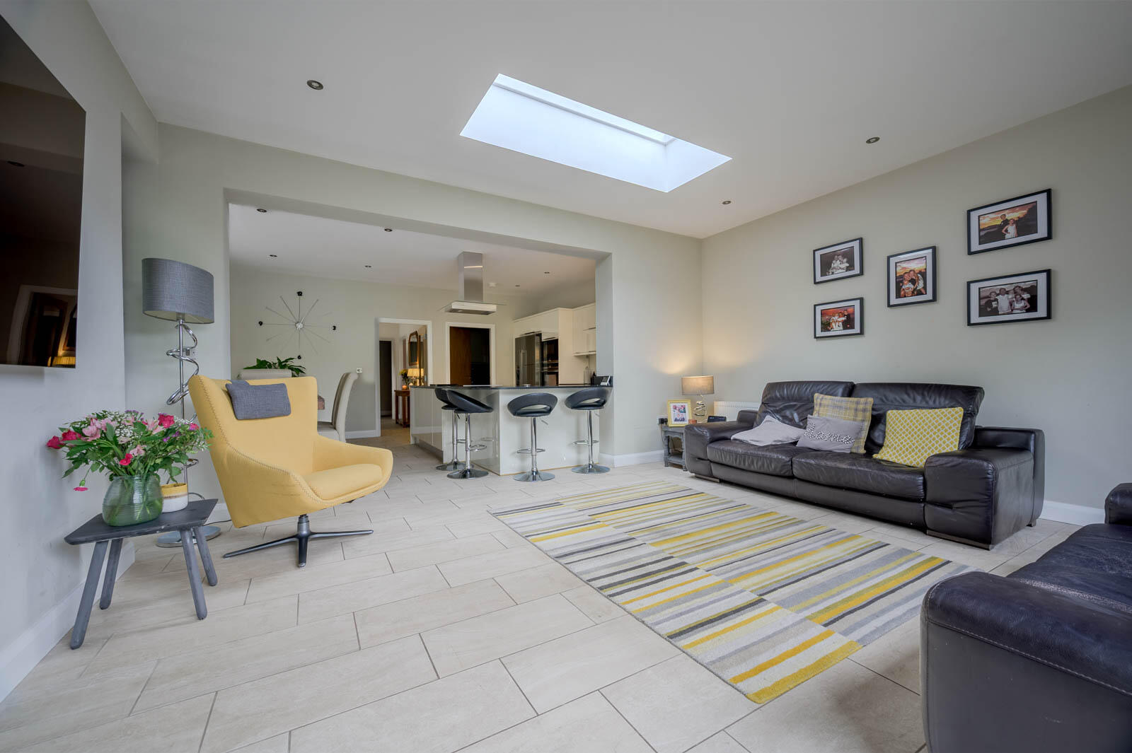 Generous Living Room with Boxed Skylight and Aluminium Sliding Patio Doors to Rear Garden