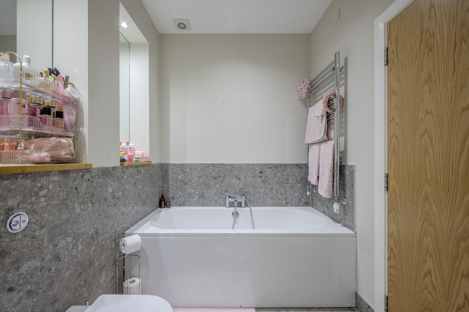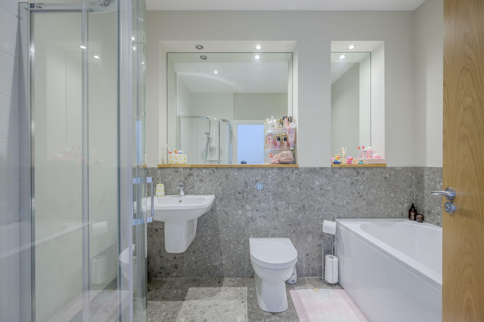 Sleek, Tiled Bathrooms with Contemporary Sanitary Ware and High-End Finishes Throughout