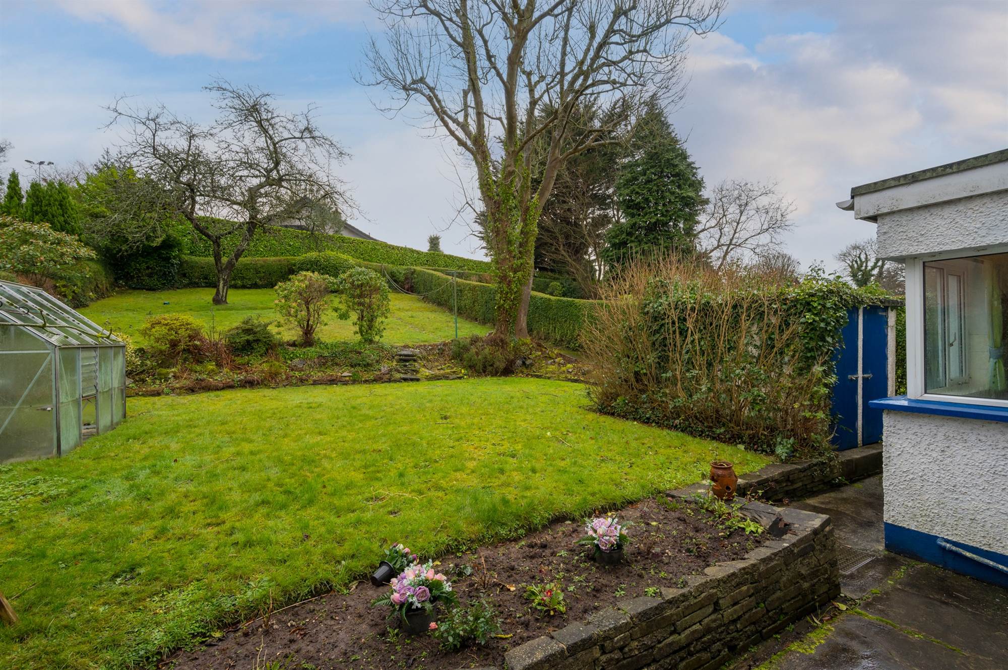 Front gardens in lawns and hedging, gates to driveway. Enclosed, good sized gardens in lawns to the rear with hedging and mature trees and an apple tree. Garden stores, uPVC oil tank.