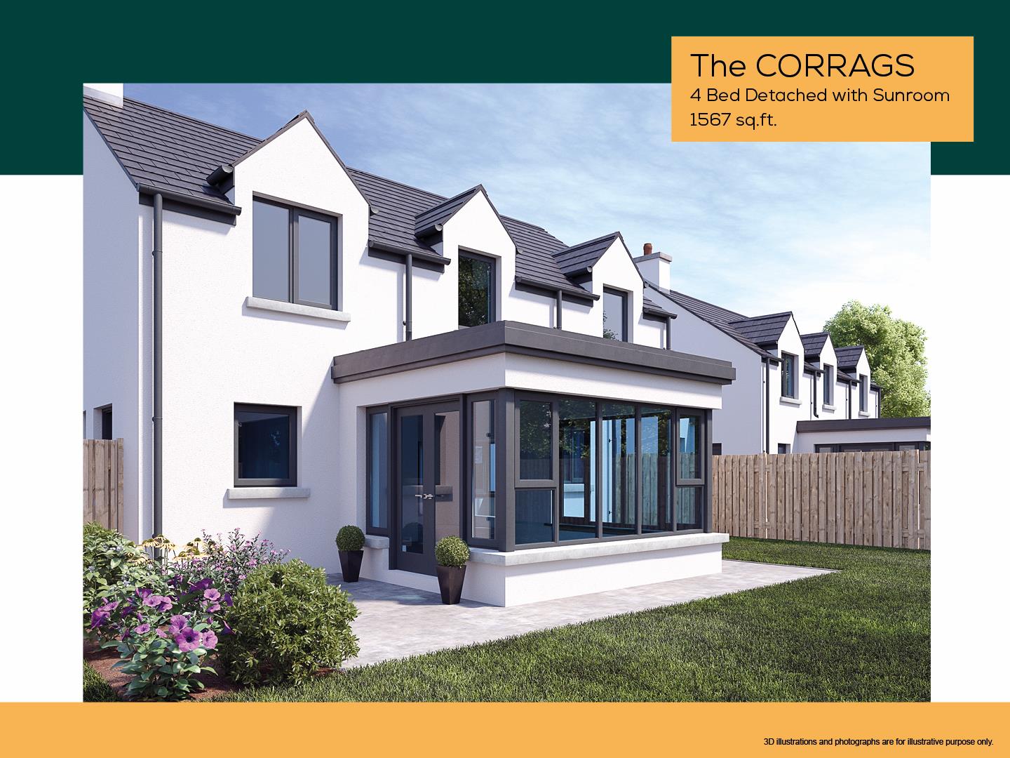 This exclusive collection of homes in Burren View offer seclusion in a private rural setting. Each property is designed to reflect the needs of modern family living with well thought out room layouts, floor plans and high specification finishes throughout.A selection of house types offer the additional extra of an optional sunroom**, perfect for providing that extra bit of living space for family needs or entertaining with family and friends. Working with our long term suppliers these homes offer high-quality fixtures and fittings throughout, to allow for easy maintenance and ensure comfortable family living. We offer purchasers a choice in key decisions with the finish and specification of their new homes which means each home in the development will be unique as you stay at the forefront of designing your new home to reflect your style, making it your dream home. Our new homes are energy efficient with high levels of insulation thereby reducing heat loss and your fuel bills. They achieve a high energy efficiency rating thus reducing day to day fuel bills.**Option available on `The Corrags´ House type*Add a beautiful sun room to create a larger open plan kitchen, living, dining area.*