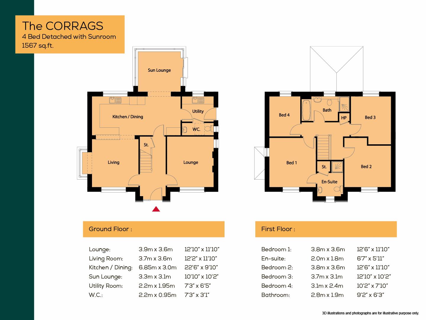 EXTERNAL10 Year NHBC Structural WarrantyThermoshield entrance door with 5 point locking systemMaintenance free uPVC energy efficient double glazing with lockable system (where appropriate)Maintenance free uPVC fascia and soffitDriveways to be finished in bitmacFeature external lighting to front & rear doorsOutside tapTimber Fencing to rear and adjoining gardensINTERNALHigh Quality Turnkey FinishOil Fired Central HeatingUnderfloor Heating to Ground FloorComprehensive range of electrical sockets throughout, including TV and telephone pointsUSB sockets to selected roomsHigh standard of floor, wall and loft insulation to ensure minimal heat lossMains Supply smoke, heat and carbon monoxide detectorsInternal walls, ceilings and woodwork painted in neutral coloursInternal Doors - Pre Finished oak doors with Chrome ironmongeryOption of wiring left for future Electric VehicleCharging PointElectric Point for Future FireKITCHENA choice of quality kitchen doors, worktops and handles from nominated suppliersIntegrated Appliance Package - includes hob, oven & fridge freezerFeature Downlights to Kitchen*Selection available from nominated supplier*BATHROOMSEnsuites & WC´s Contemporary white sanitary ware with chrome fittings .Heated chrome towel rail in main bathroom.Thermostatically controlled showers in main bathroom and ensuite.Feature downlights to main bathroom and ensuite.*Selection available from nominated supplier*FLOOR/TILING FINISHESChoice of ceramic floor tiling to kitchen, dining area, utility, bathroom, ensuite and WC.Tiling to shower enclosures.Splash back tiling to bath, wash hand basins.Carpets to lounge, family room, stairs, landing and bedrooms.*Selection available from nominated supplier*