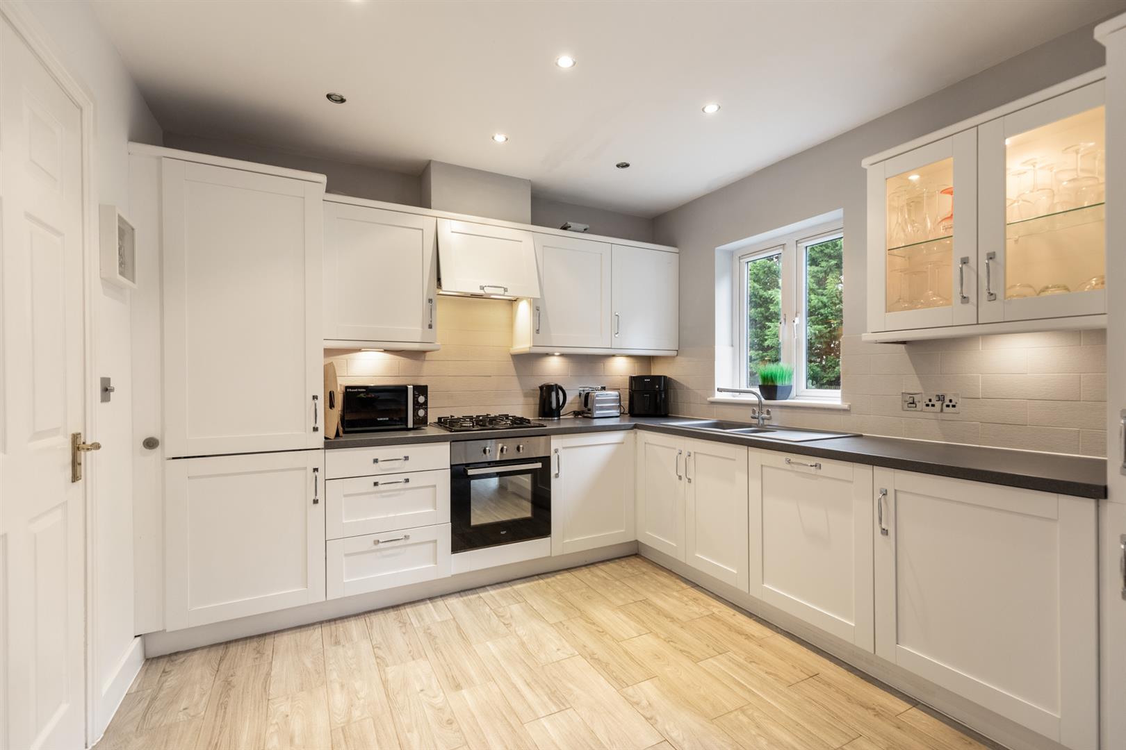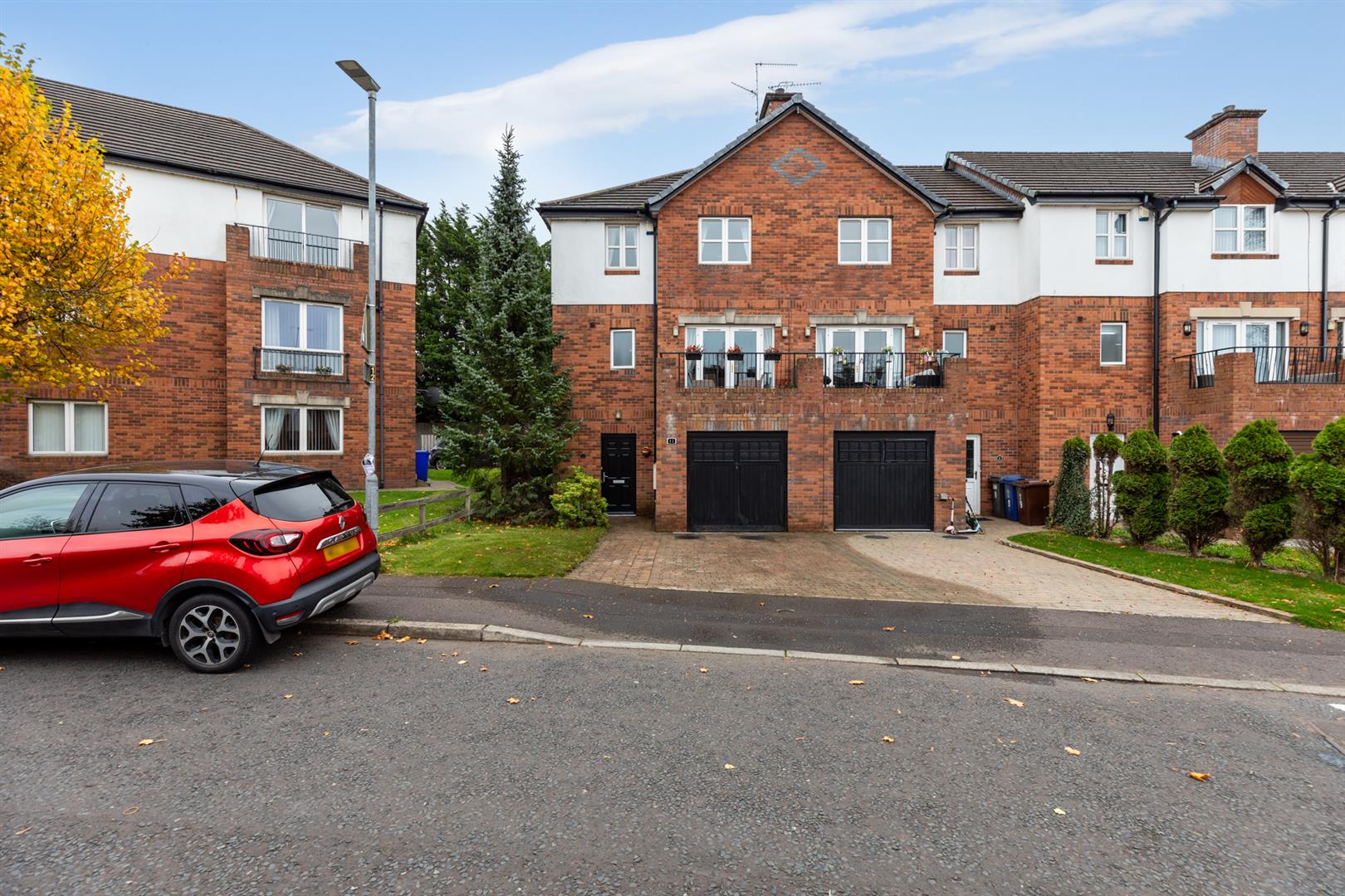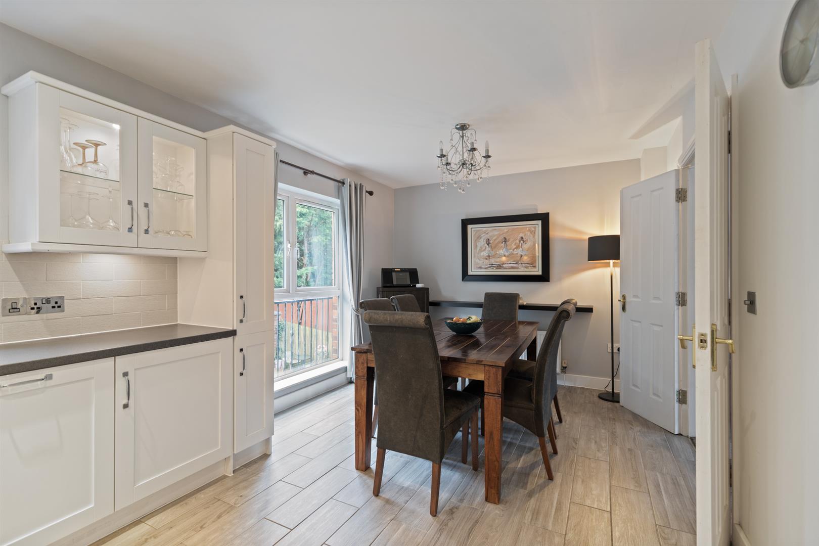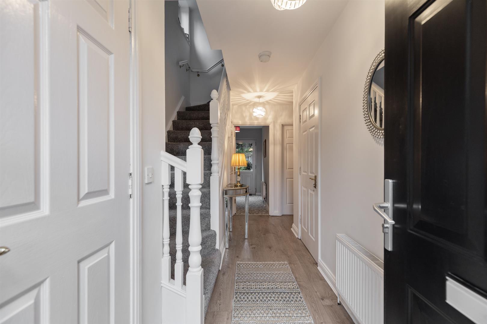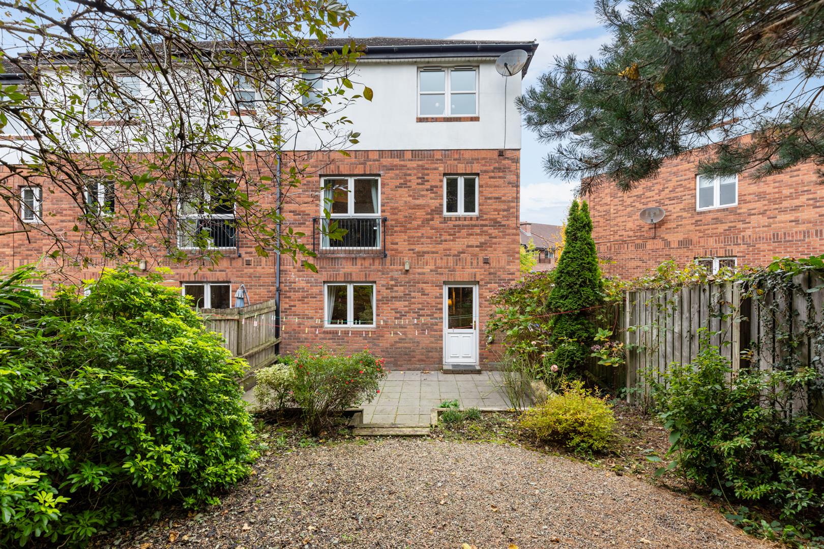 A superior, well presented and finished end town house that enjoys a prominent south facing position within this popular and established residential area. Four comfortable, well appointed, double bedrooms. Principle bedroom with ensuite shower room. One generous reception room with feature double doors to south facing balcony. Luxury fully fitted kitchen open to a casual dining area. Feature utility room. White bathroom suite. Further W.c on 1st floor landing. Downstairs w.c / cloakroom. Upvc double glazed windows / gas fired central heating system. Large integral garage. Private rear gardens. Outstanding doorstep convenience positioned within the well established Blacks Road area, offering easy access to local Schools, Shops, Upper Lisburn Road, transport links to include a Park and Ride and Glider Service, also excellent connectivity to arterial routes and the City bound motorway network. Good fresh presentation throughout. Well worth a visit.