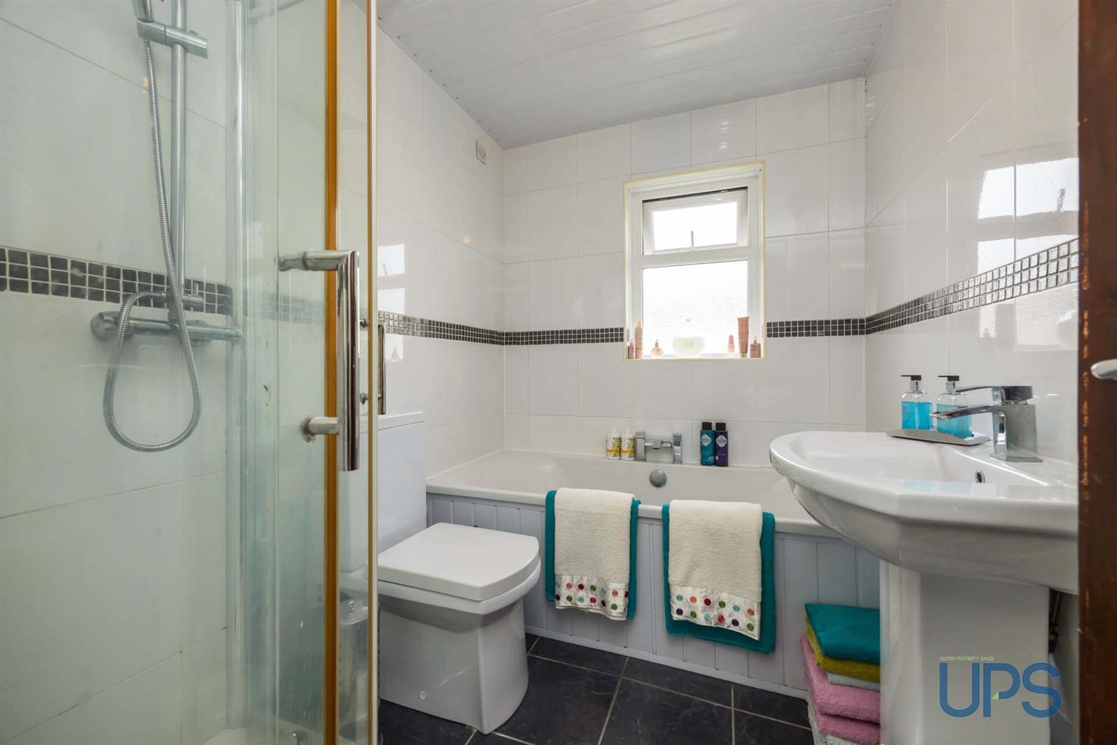 Three good-sized bedrooms and a white bathroom suite complete the first floor.