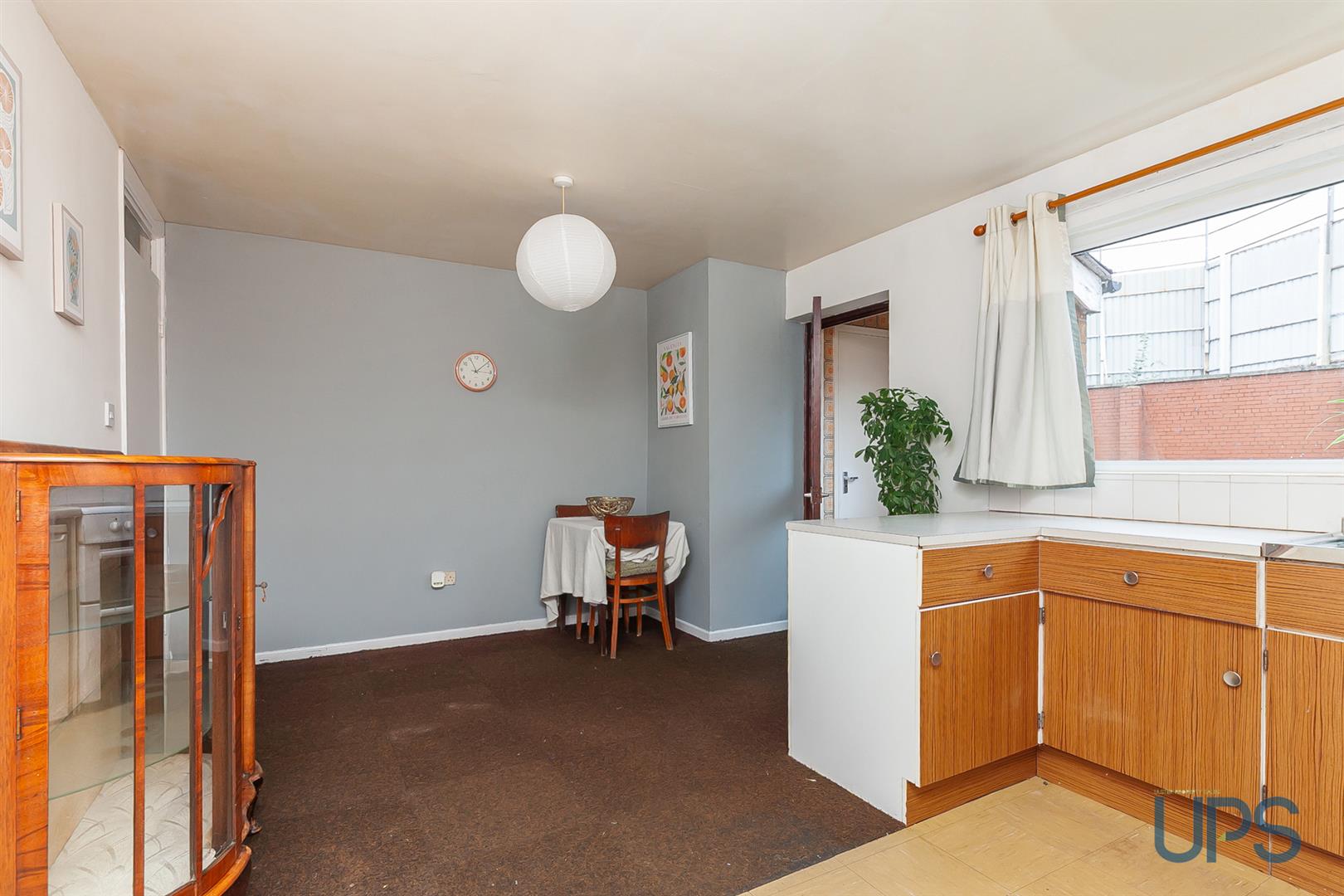 Range of high and low level units, single drainer stainless steel sink unit, open plan to sizeable dining space, excellent storage cupboard housing gas boiler.