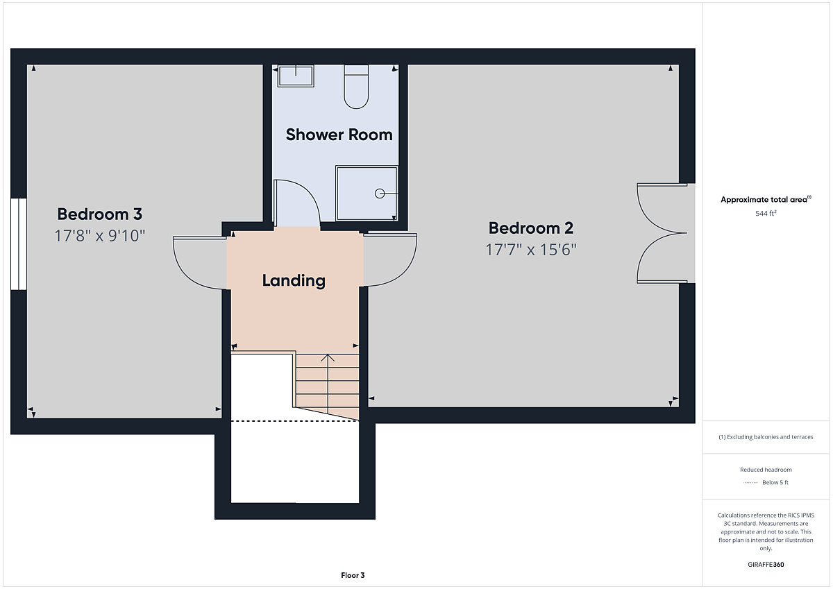 BEDROOM 3 17' 8" x 9' 10" (5.38m x 3m) Single panel radiator.