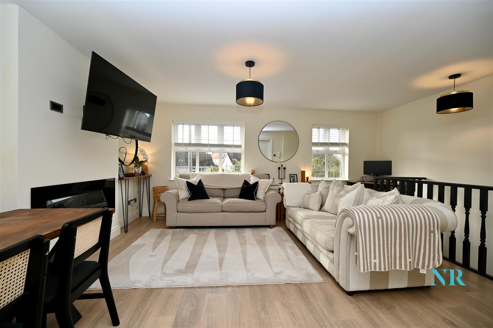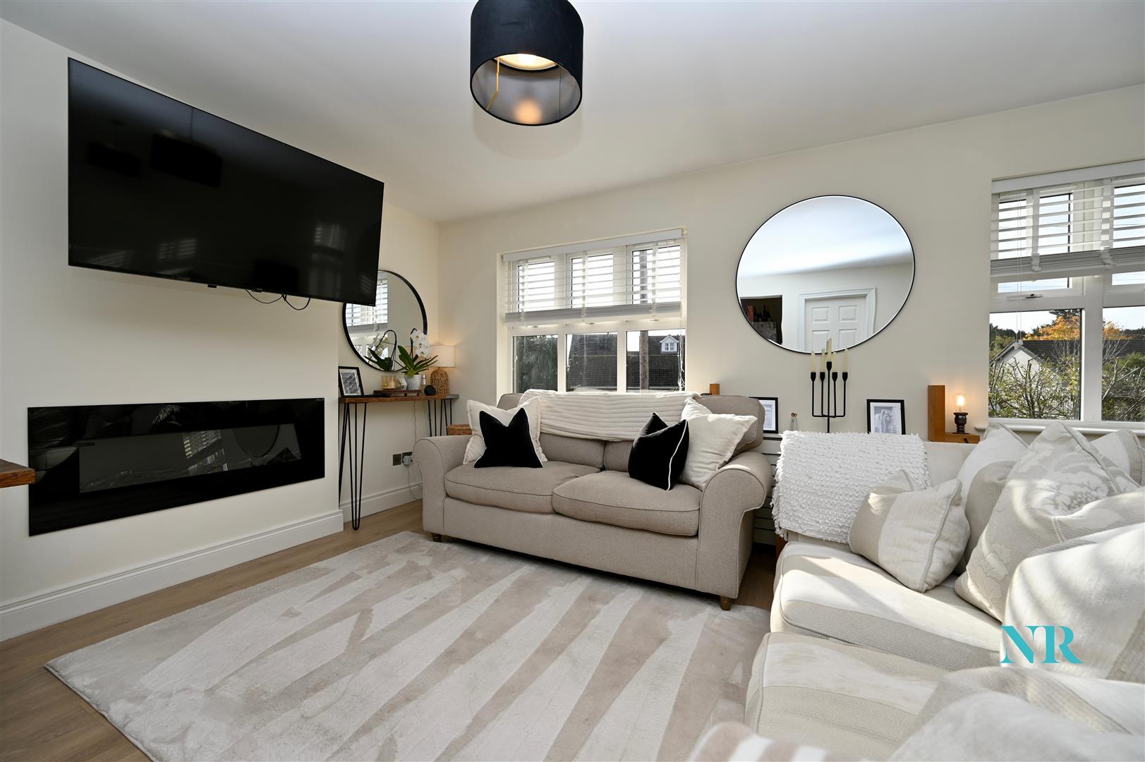 Large bright & spacious living area with a feature electric fire