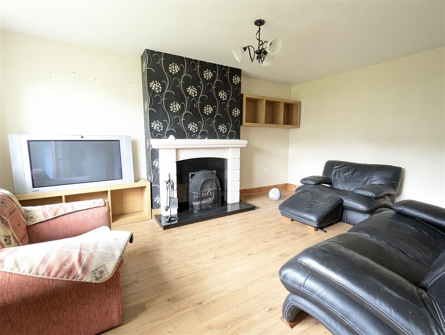 LIVING ROOM: 16'0" X 11'1" (4.88m X 3.39m) Good sized living room with front garden views. Wooden laminate flooring, open fire with a stone mantel piece, granite surround and hearth. Four double sockets, TV and telephone connection points