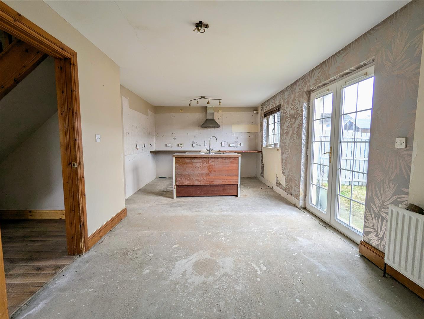 KITCHEN: 22'0" X 11'1" (6.71m X 3.38m) Spacious kitchen and dining area connecting to the rear garden via French doors, access to utility room. Electric and plumbing provision for an island, two double sockets, two single sockets, provision for an American style fridge freezer, one radiator