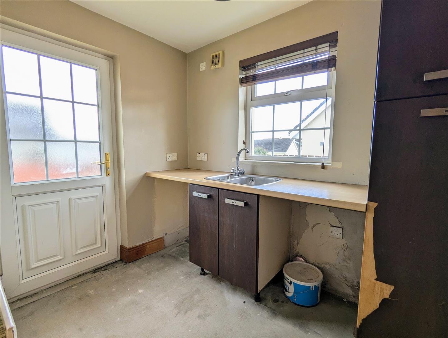 UTILITY ROOM: 8'2" X 6'1" (2.50m X 1.86m) Countertop space with wash hand basin, recess for appliances, access to rear garden. One double socket, extractor fan, radiator