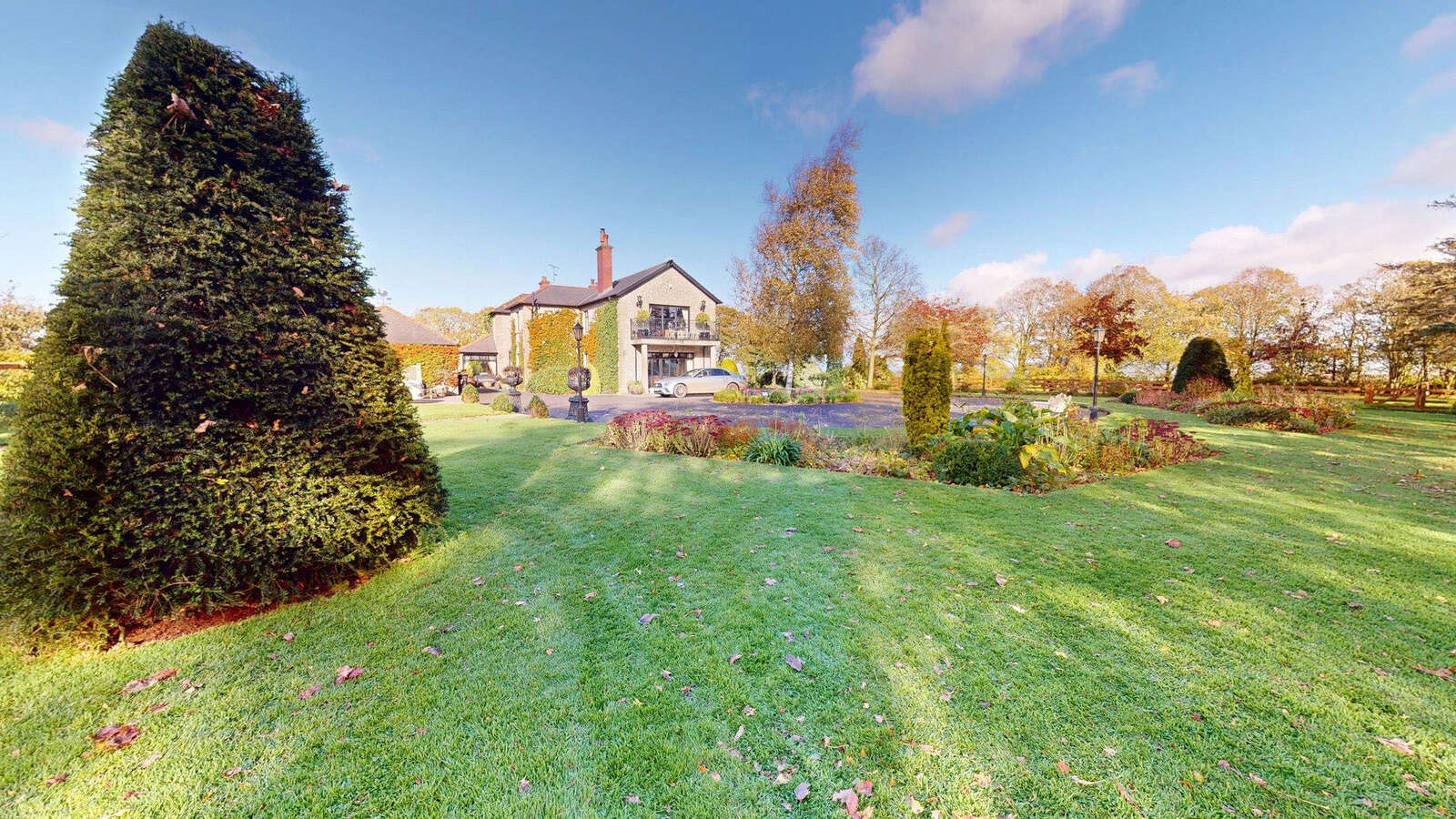 Superb road front site extending to approximately 4.5 acres with dwelling house positioned in the centre of the land approached by sweeping, tarmac driveway with feature turning centre to rear of property. The property is framed with mature, landscaped gardens laid out in neat lawns with well stocked flower and shrub beds, trees and hedgerows. The entire site is enclosed with good fencing